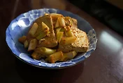 돼지고기 소를 가지 안에 넣고 자작하게 졸인 것. 이북식 가지찜