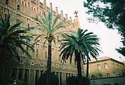 가우디는 이슬람 사원의 분위기를 내고자 건물에 탑과 망루를 설치하고, 도자기 타일을 외벽에 붙였다.