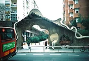 광장의 벤치는 인체에 편리한 인간공학적 디자인을 위해 사람의 몸을 모델로 삼아 주형을 떴고, 벤치 표면의 기묘한 꼴라주는 추상적이고 초현실적인 그림과도 같다.