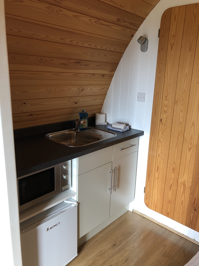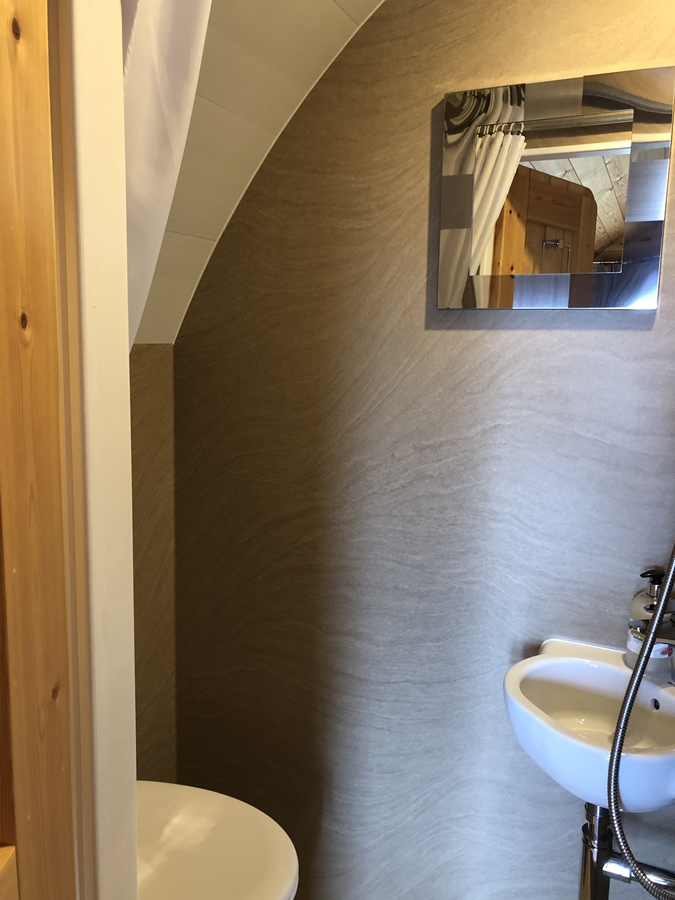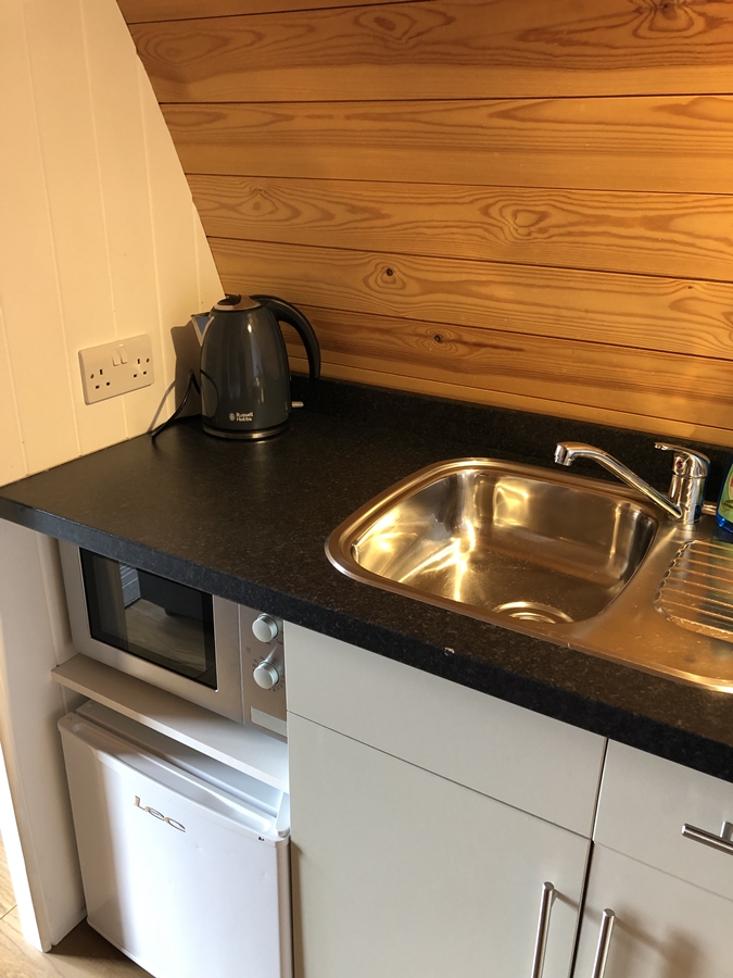 통나무 캐빈이지만 샤워실에 화장실도 있고, 주방도 있다. 침대도 있고