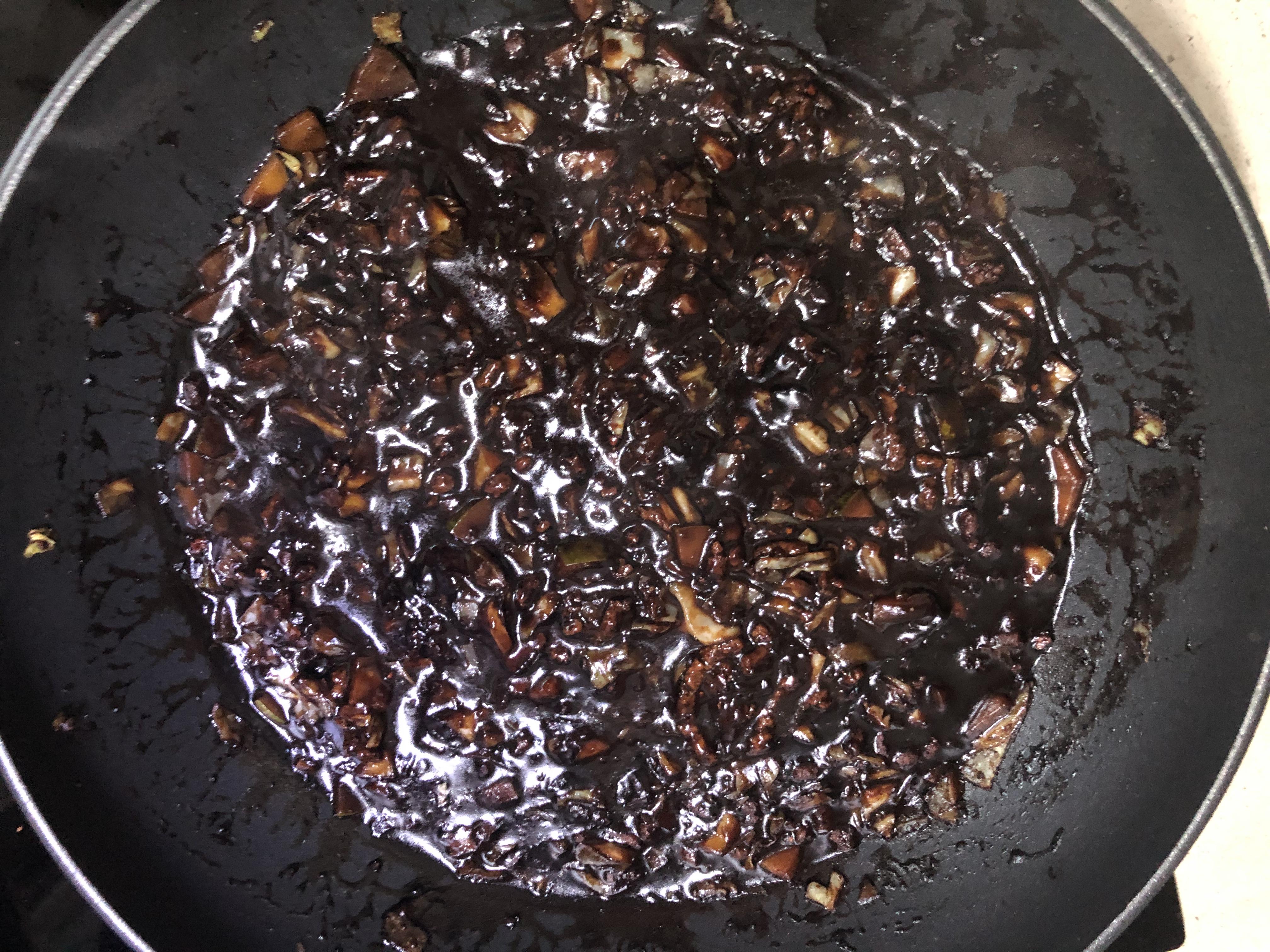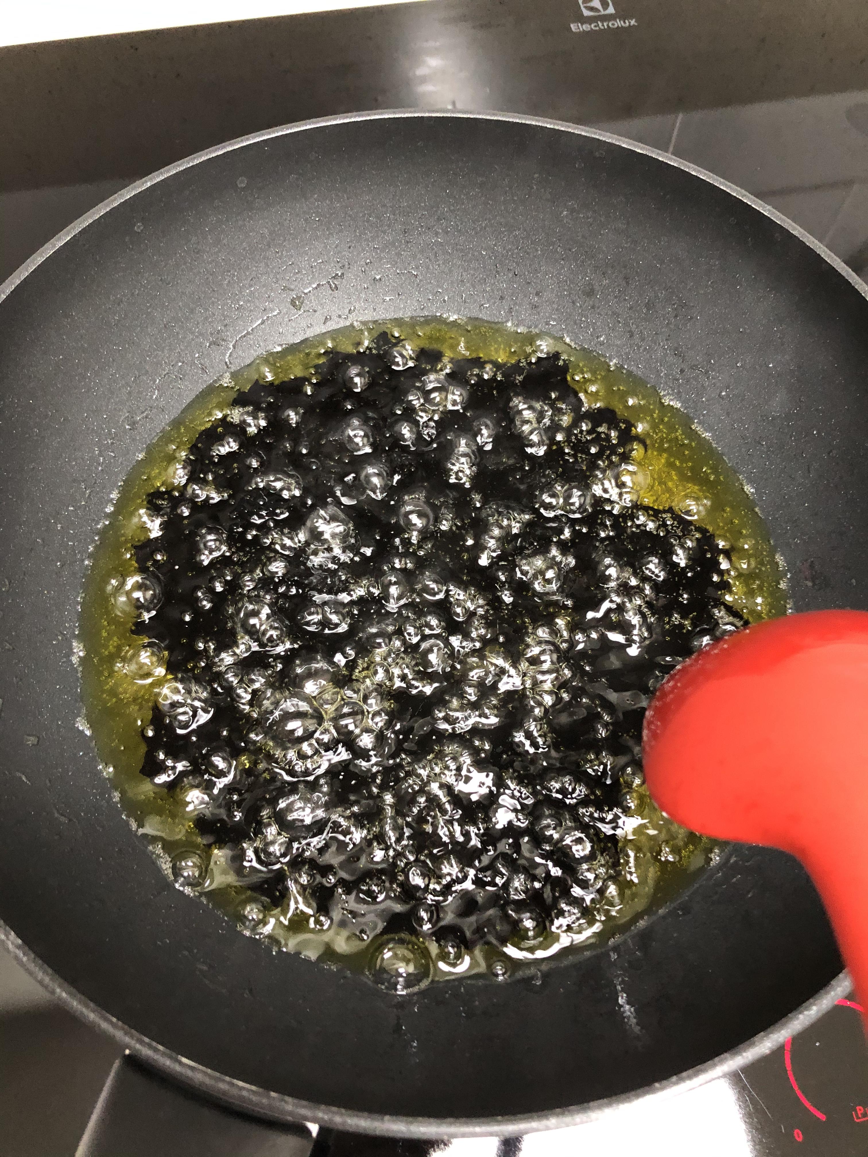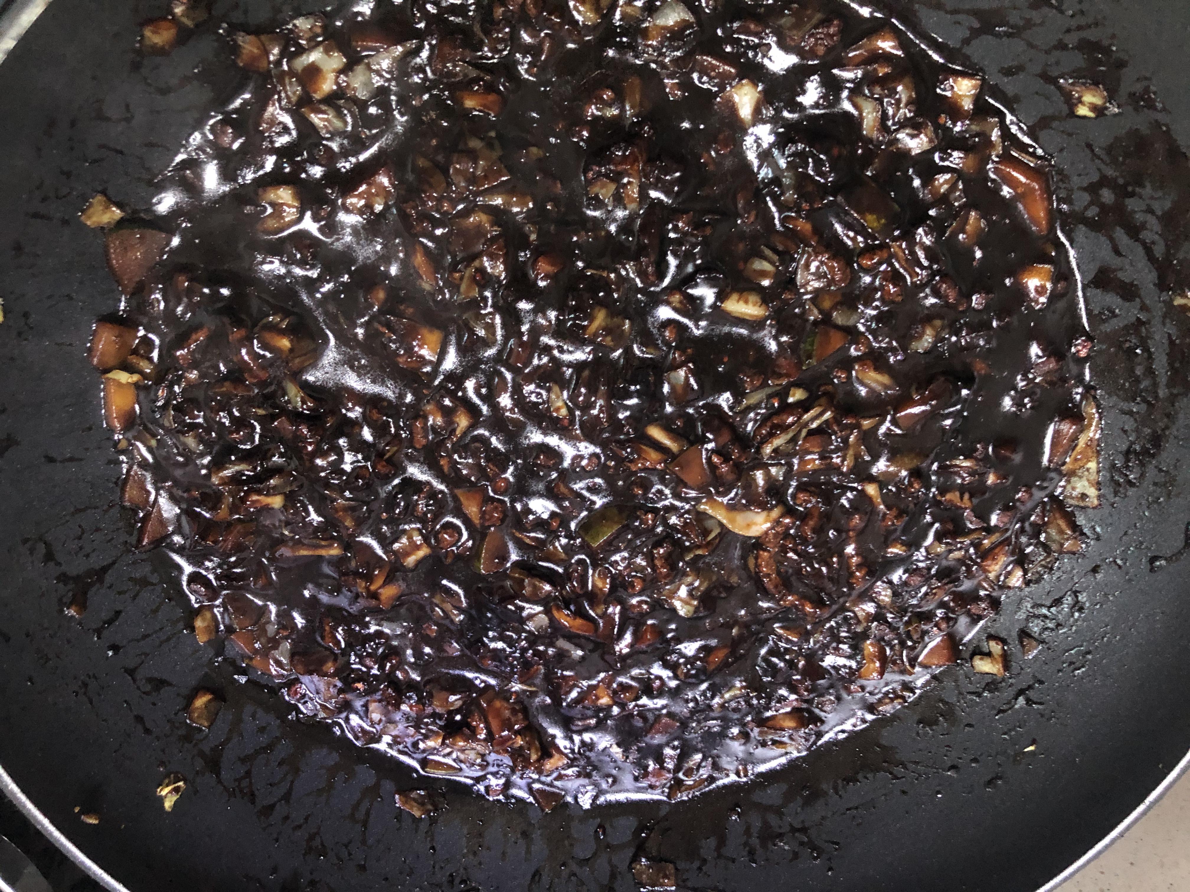 짜장을 기름에 푹 넣고 튀기듯 볶는다.