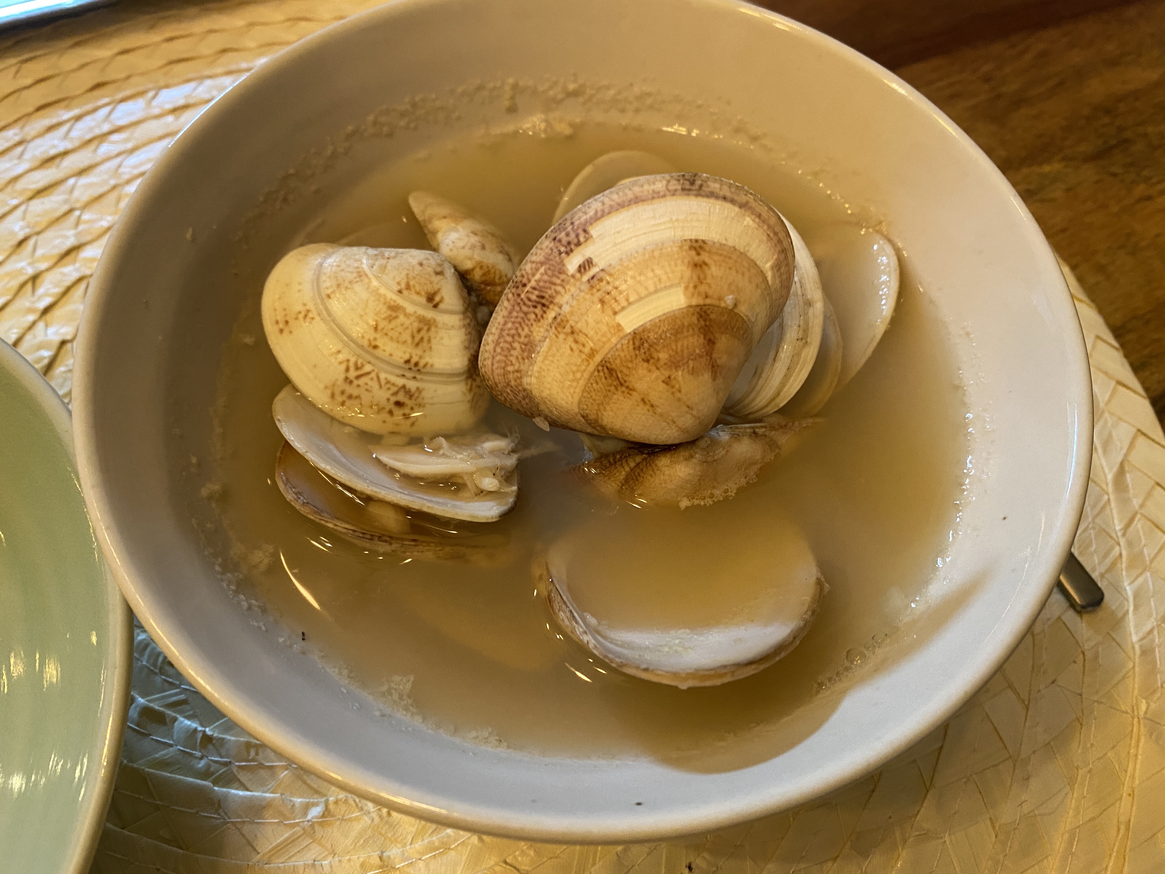 매운 양념으로 반을 하고 백합국을 곁들였다.
