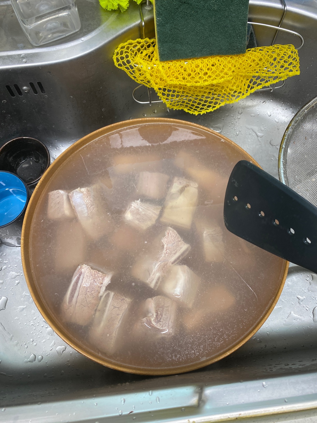 먼저 뜨거운 물을 부어서 갈비 한번 싹 정리해준다.