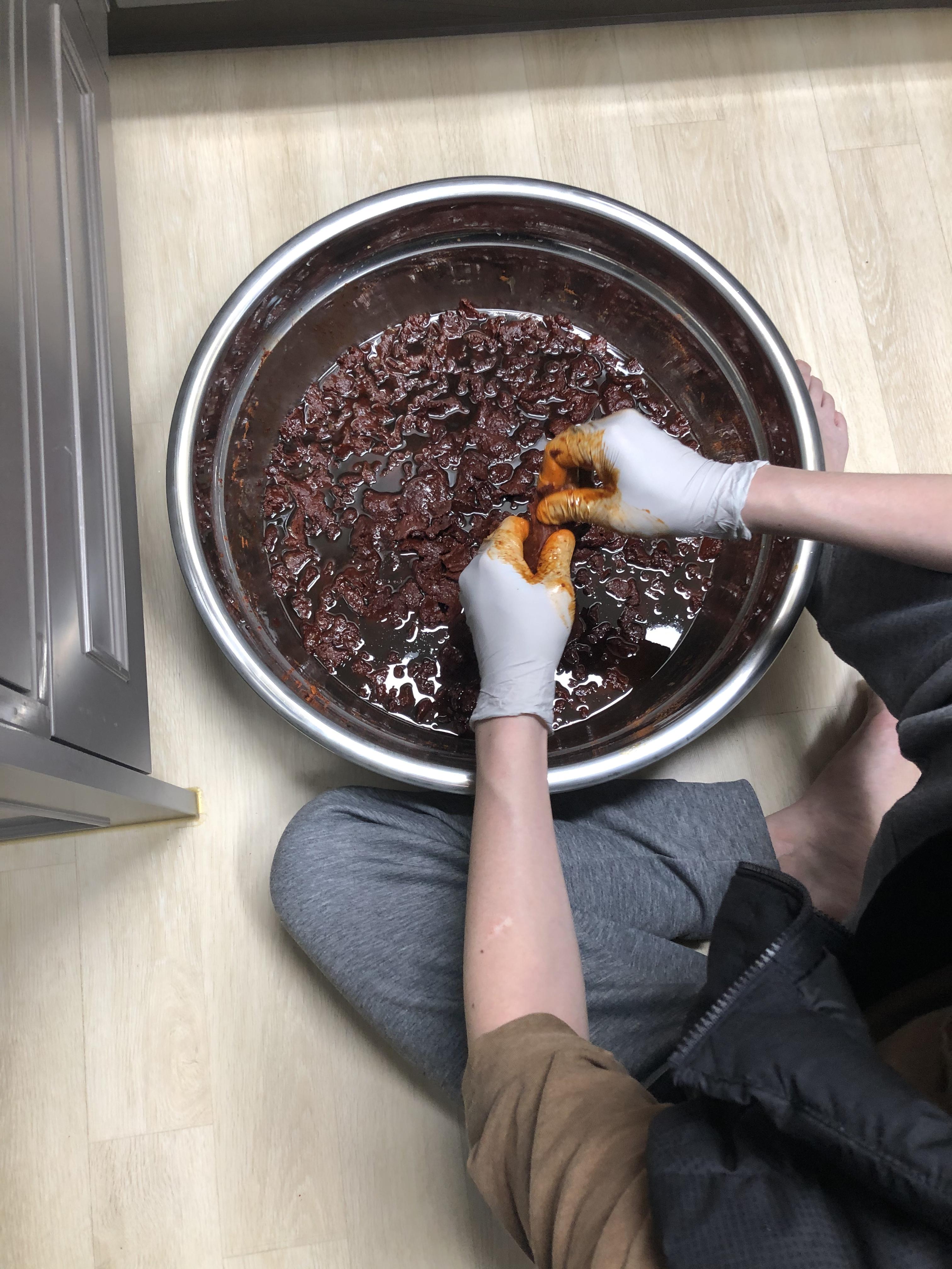 고추장떡을 해쳐작업하는 게 제일 힘들더라.
