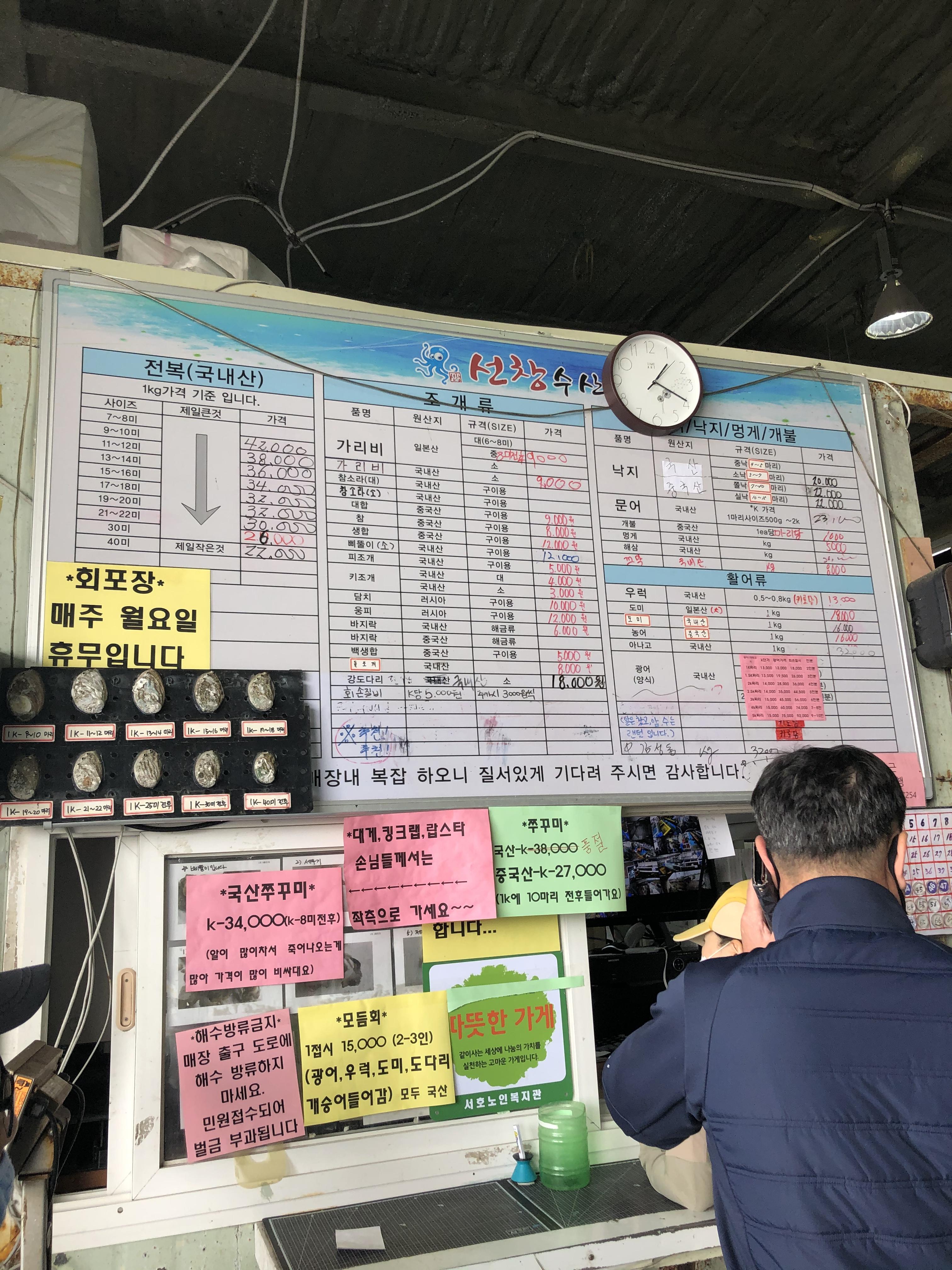 내부에 들어 가면 마치 시외버스정류장에서 버스표 사듯이 가리비, 멍게, 낙지, 줄돔 등을 살 수 있다.