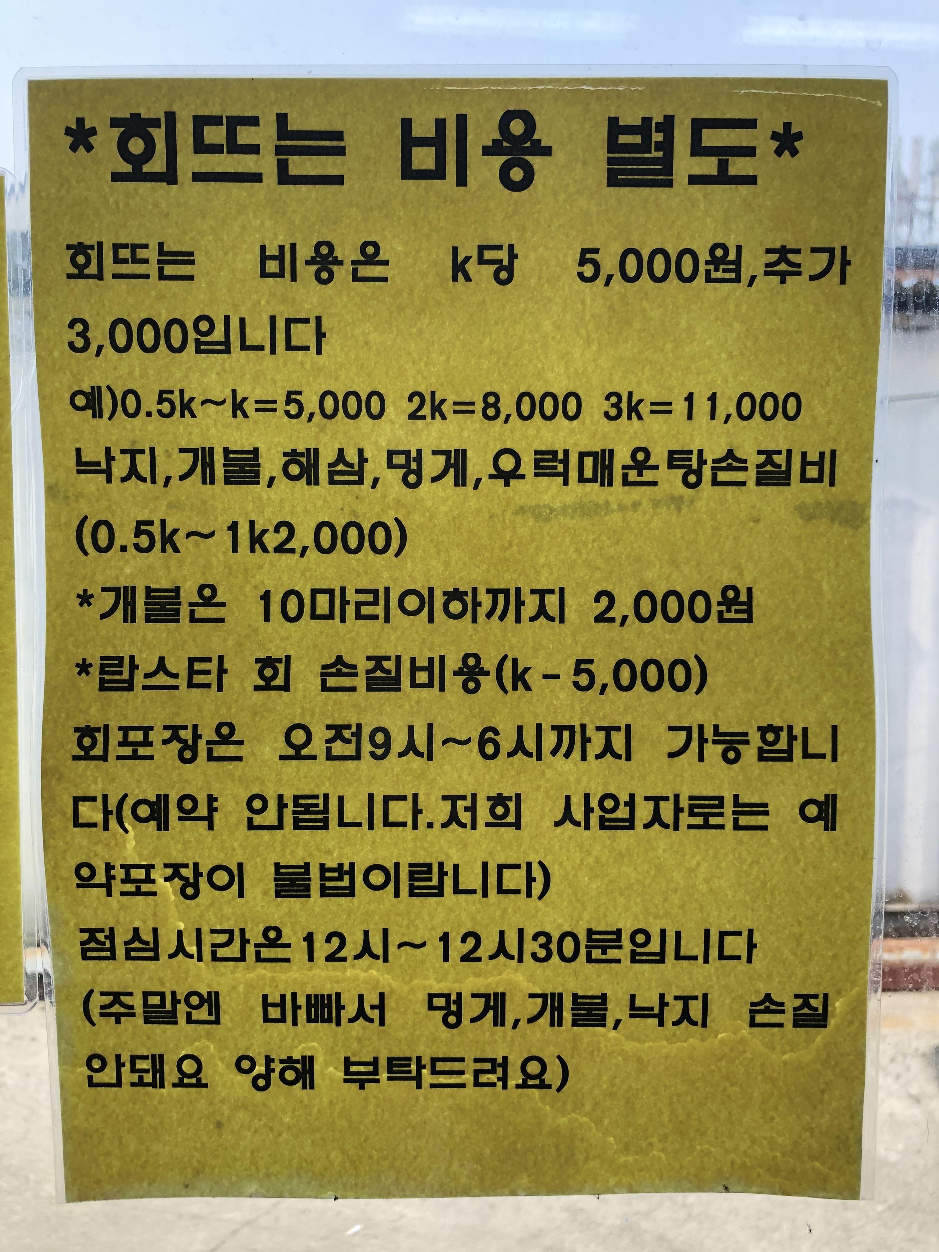 회를 주문하면 뒤쪽에 회를 받아 가는 곳이 있다.