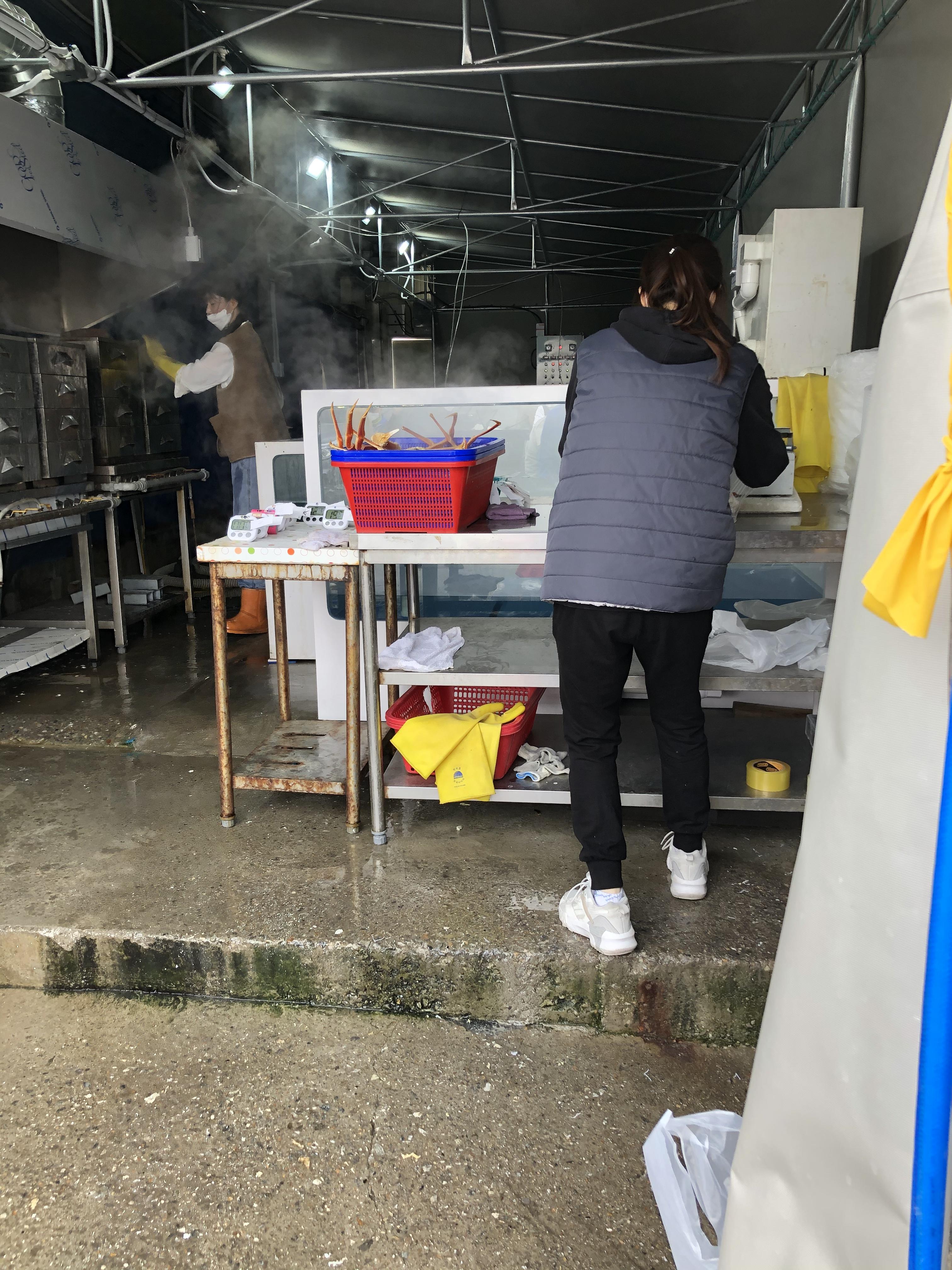 찜통에서 게를 찌고 바로 옆에서 포장해 준다.
