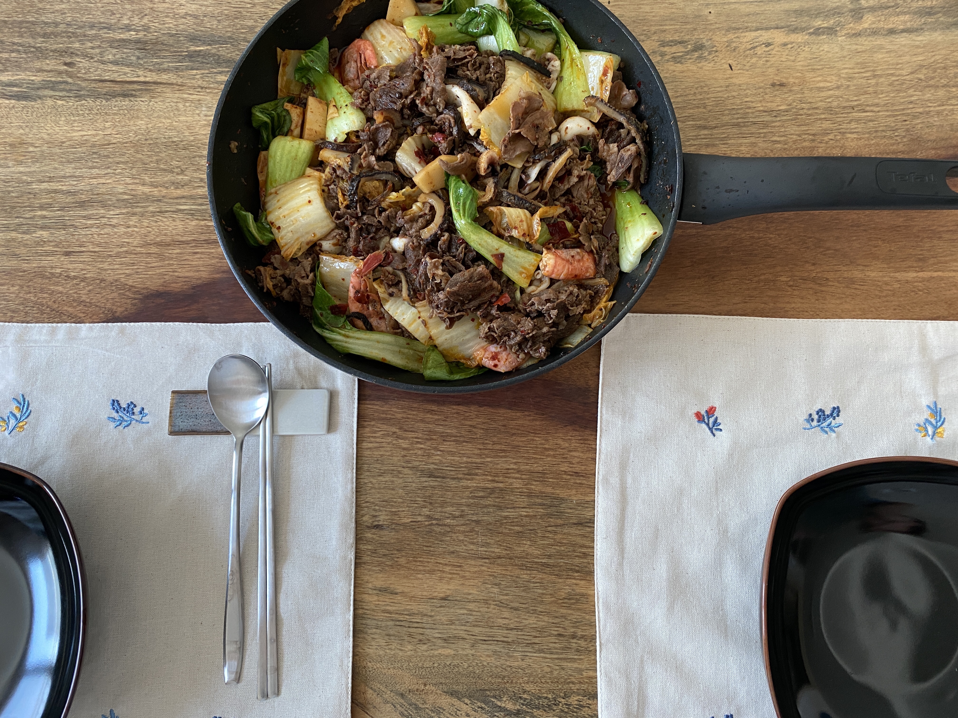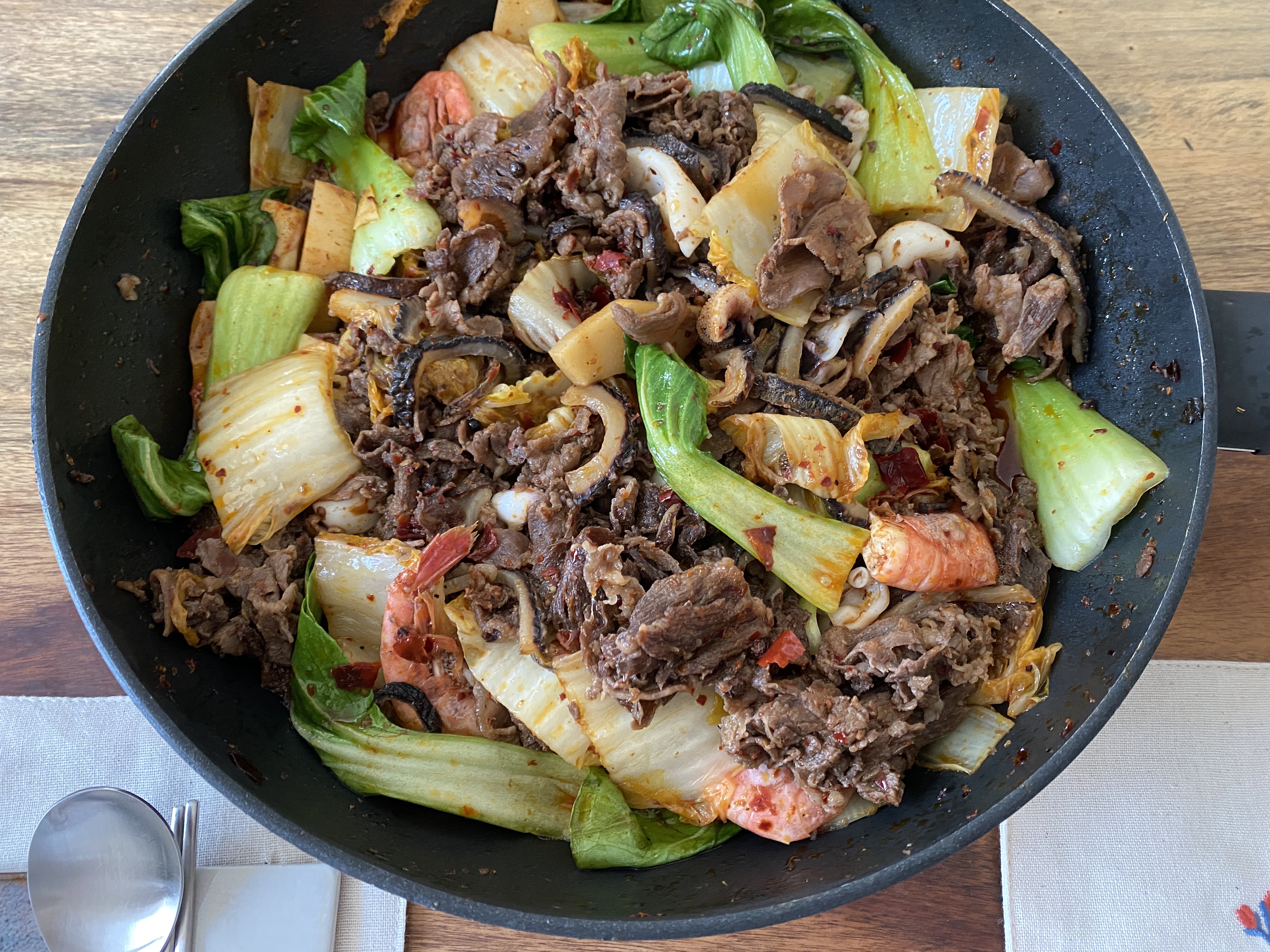 하이디라오 훠궈 소스 한 봉 넣고 볶기만 하면 된다.