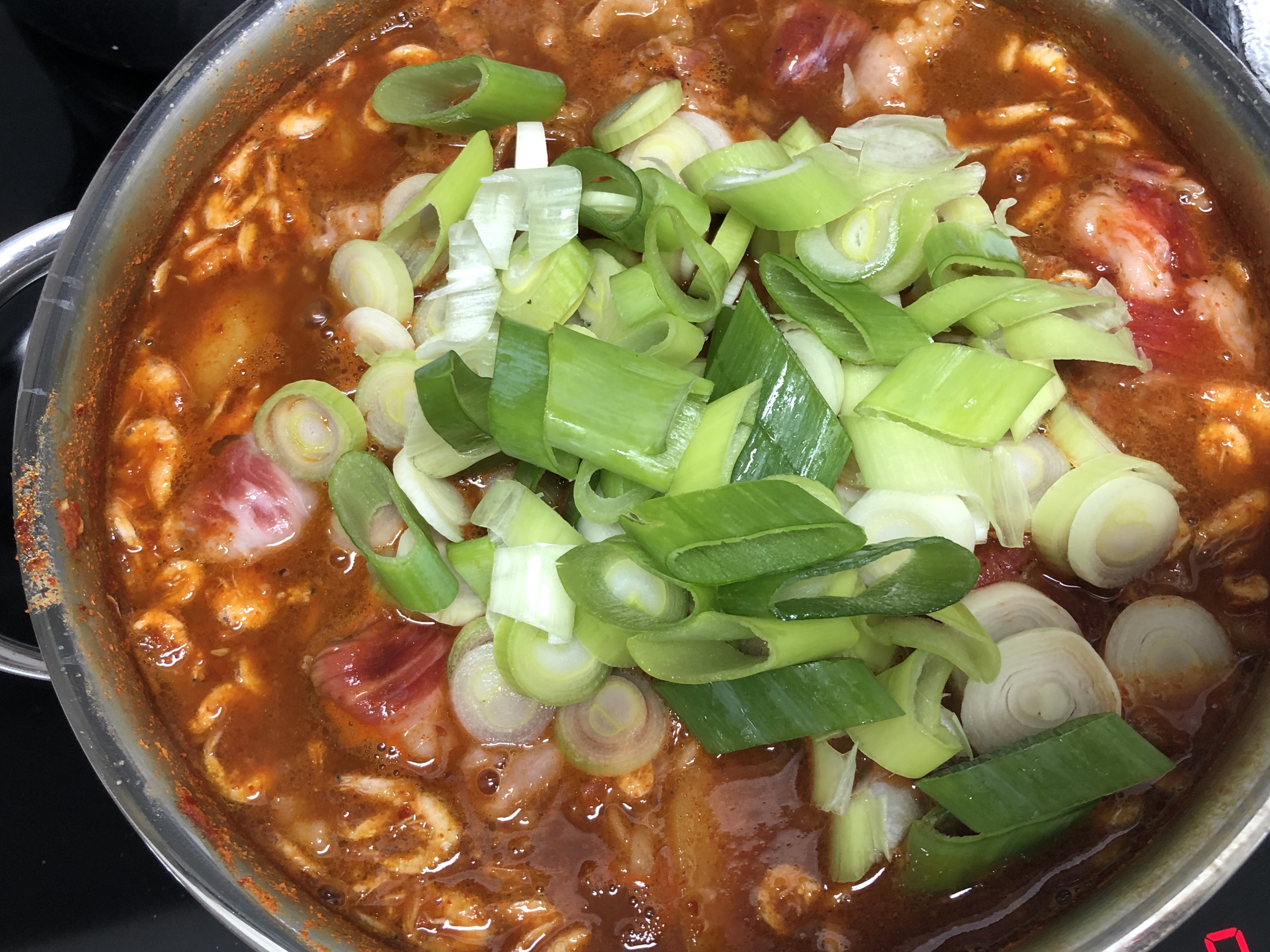 차돌박이와 파는 감자가 다 익은 후 넣는다.