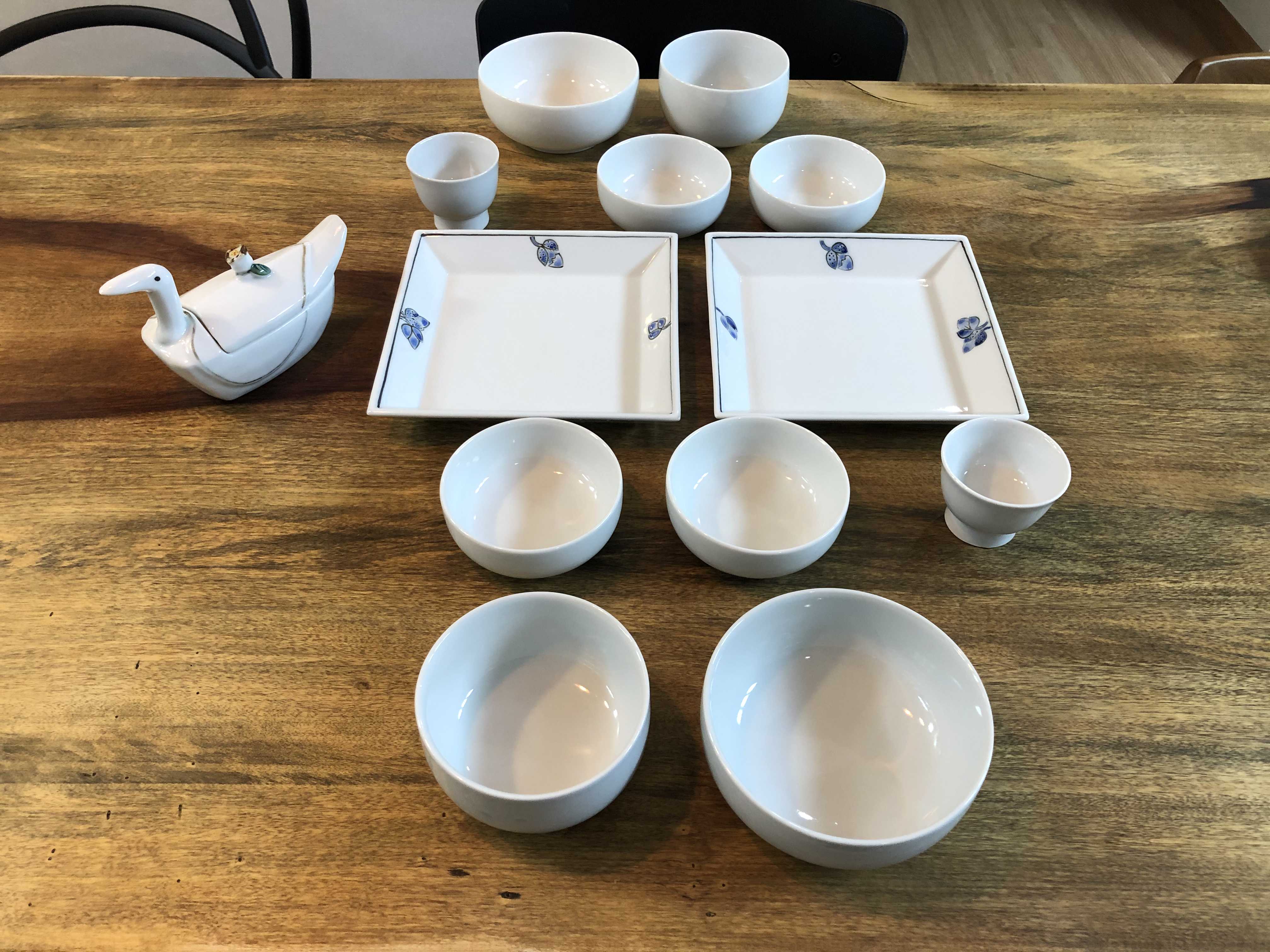 모란 봉우리 정사각형 접시도 2개 사고, 운 좋게 오리도 샀다.