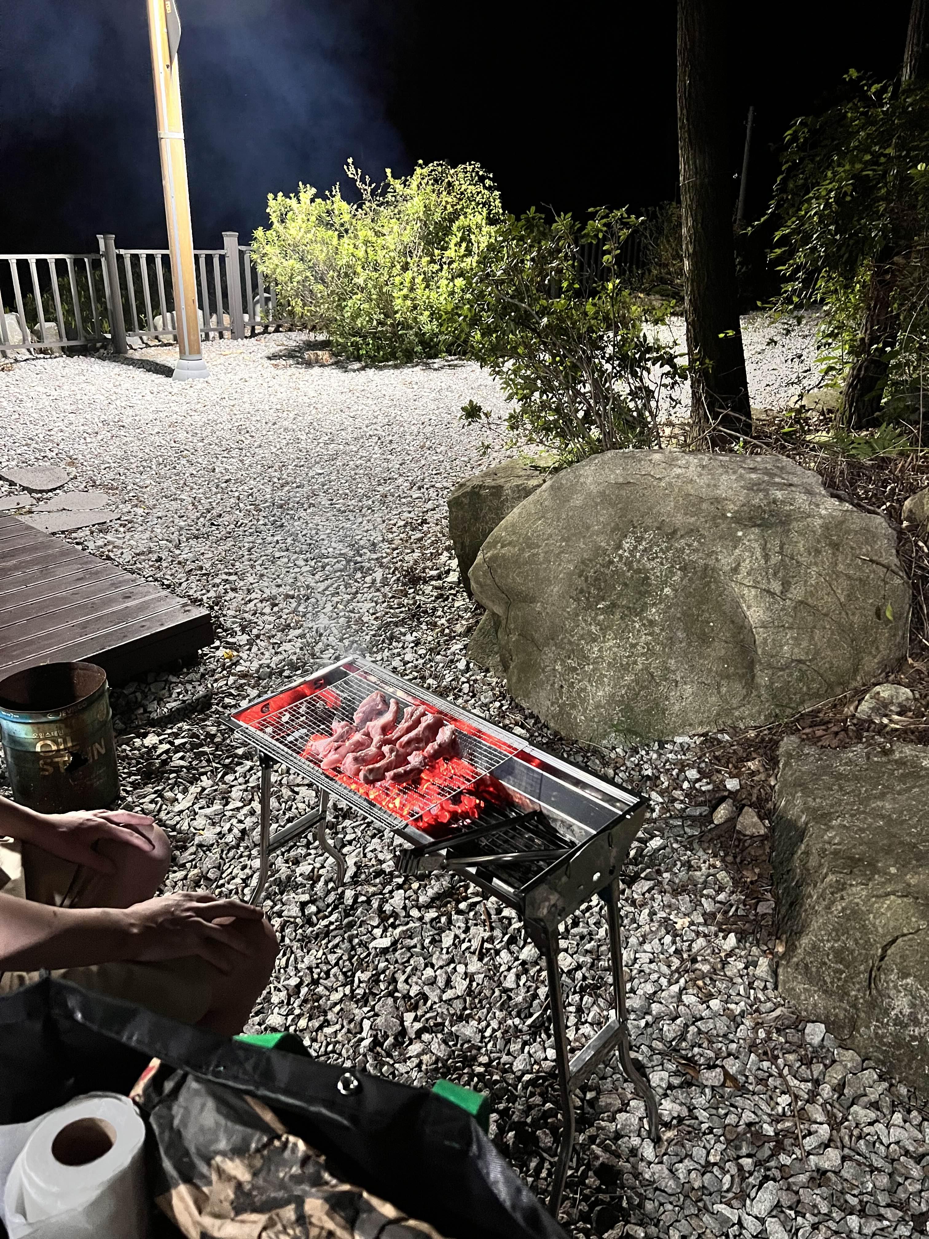 파쇄석에서만 숯 바베큐 할 수 있다.