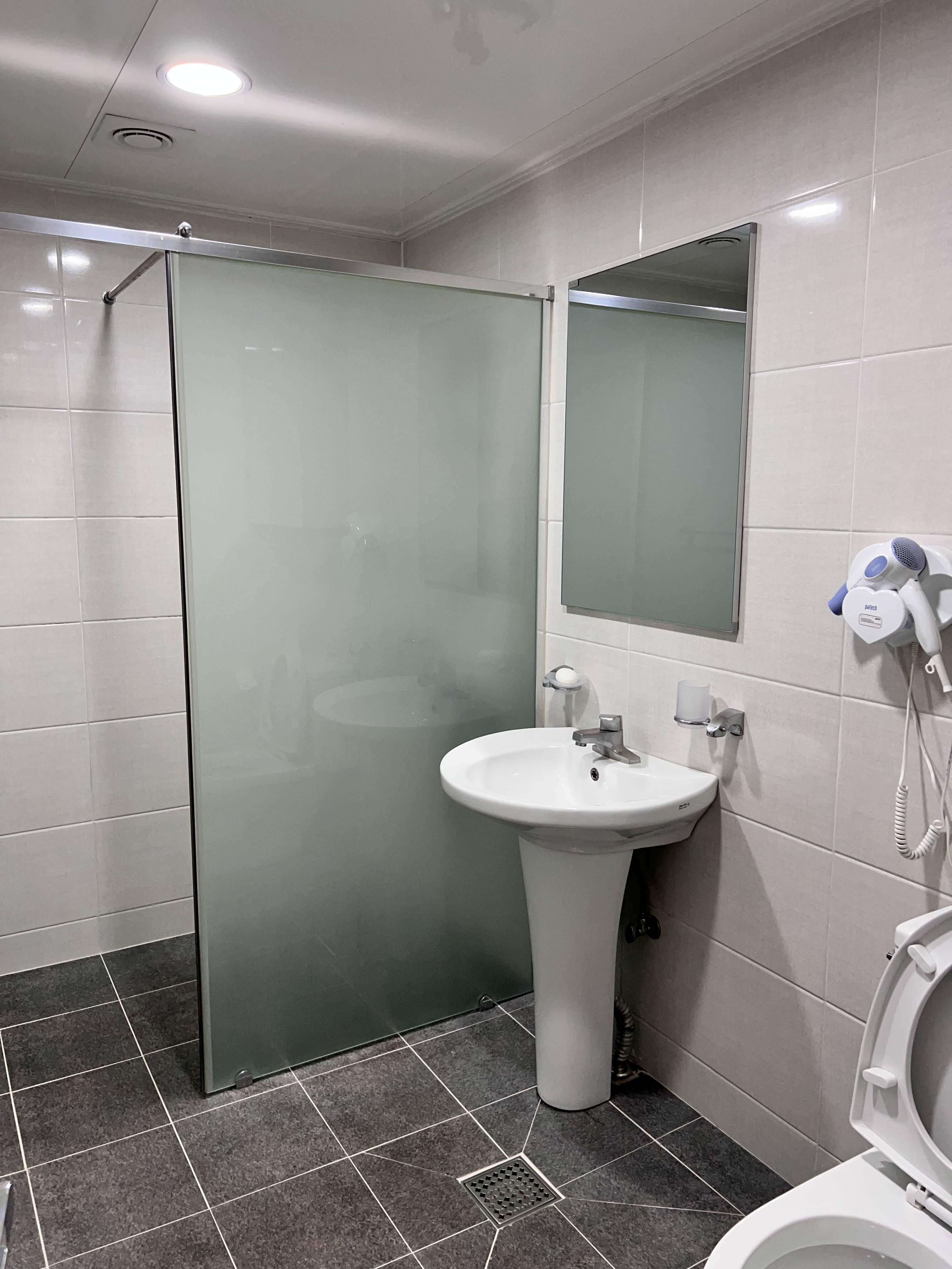 근데 화장실이 깨끗하긴 한데 배수구로부터 하수도 냄새가 너무 올라와서 곤란했다.