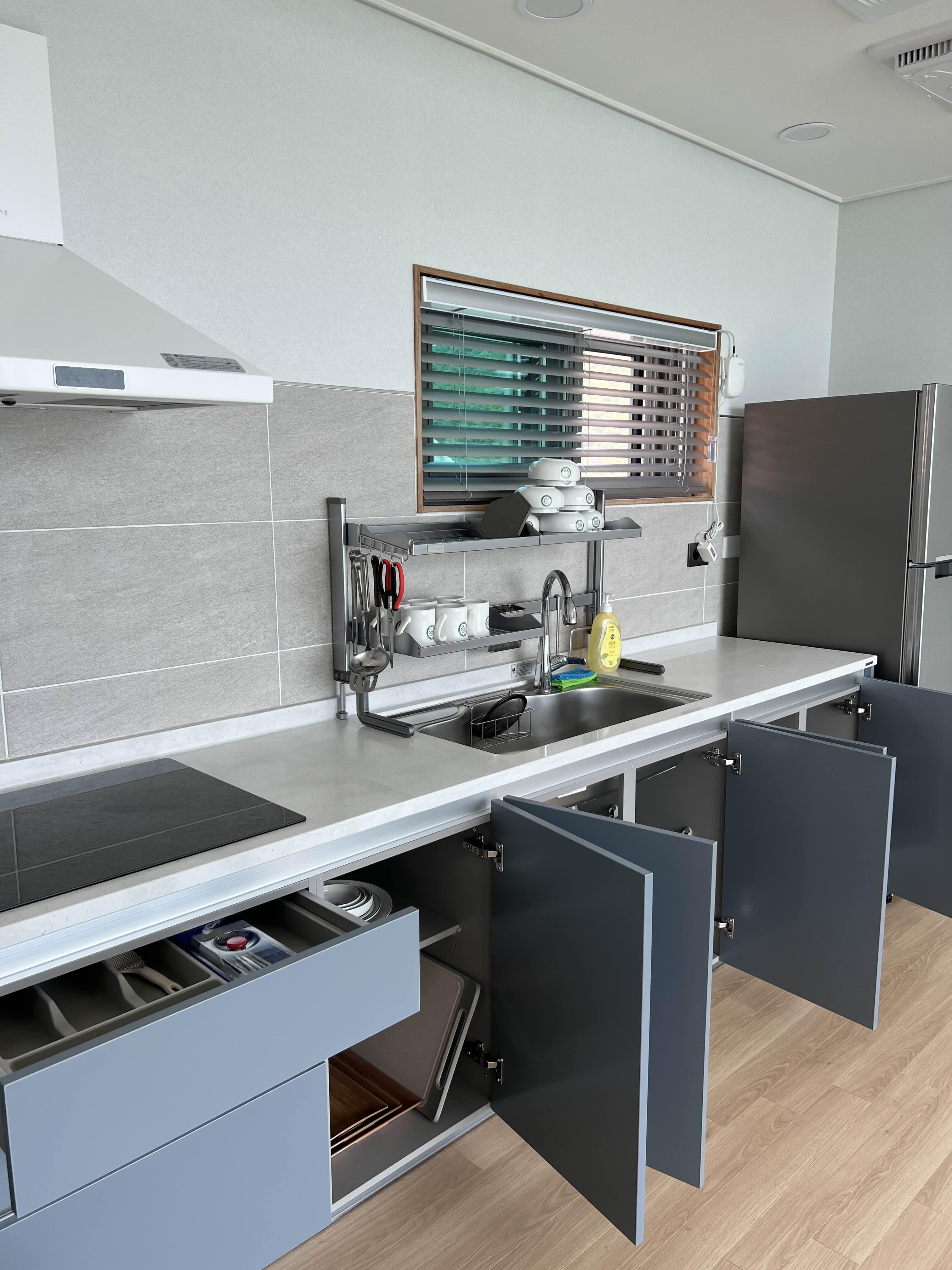 싱크대문을 다 열어 뒀길래 닫음