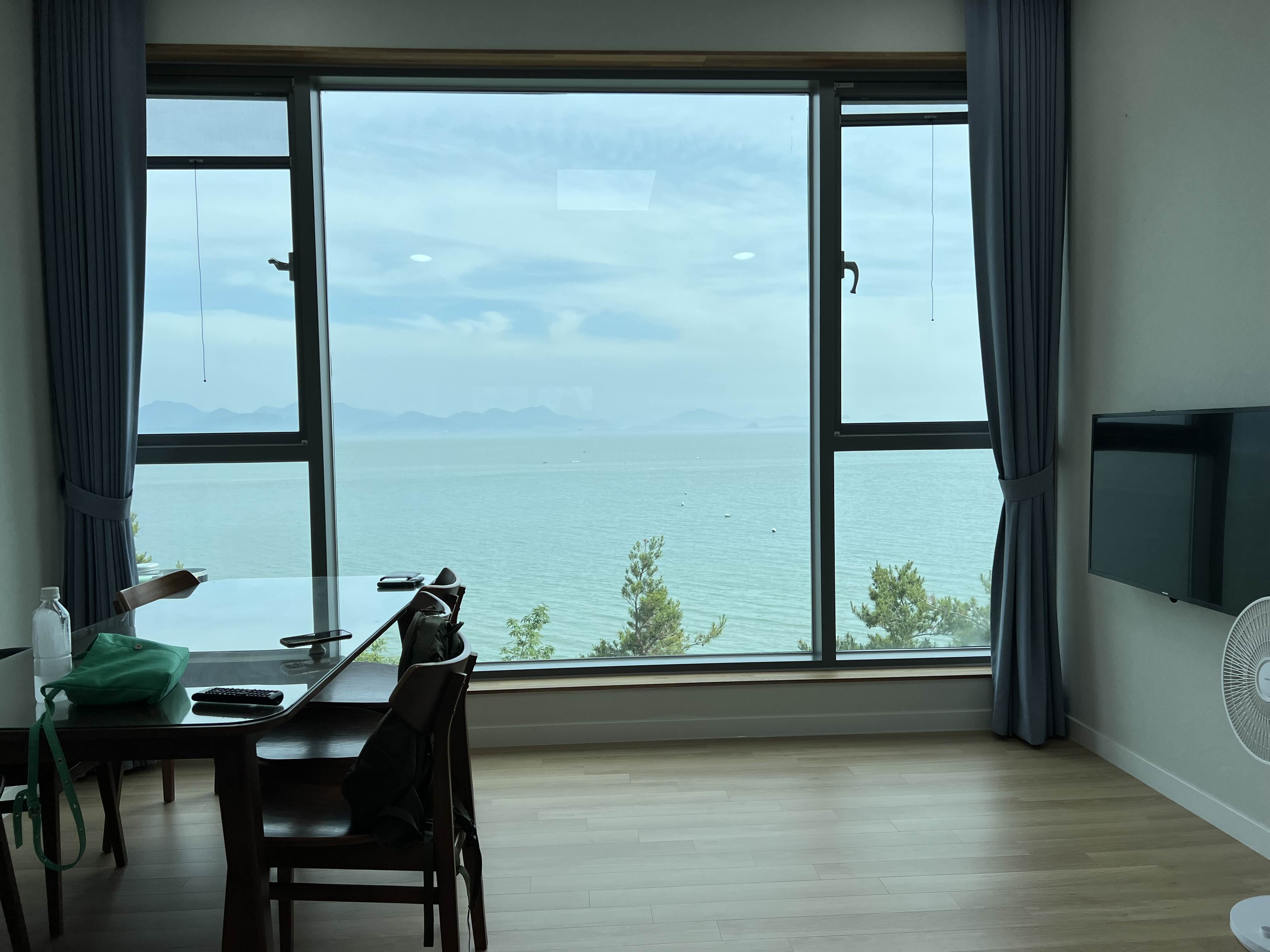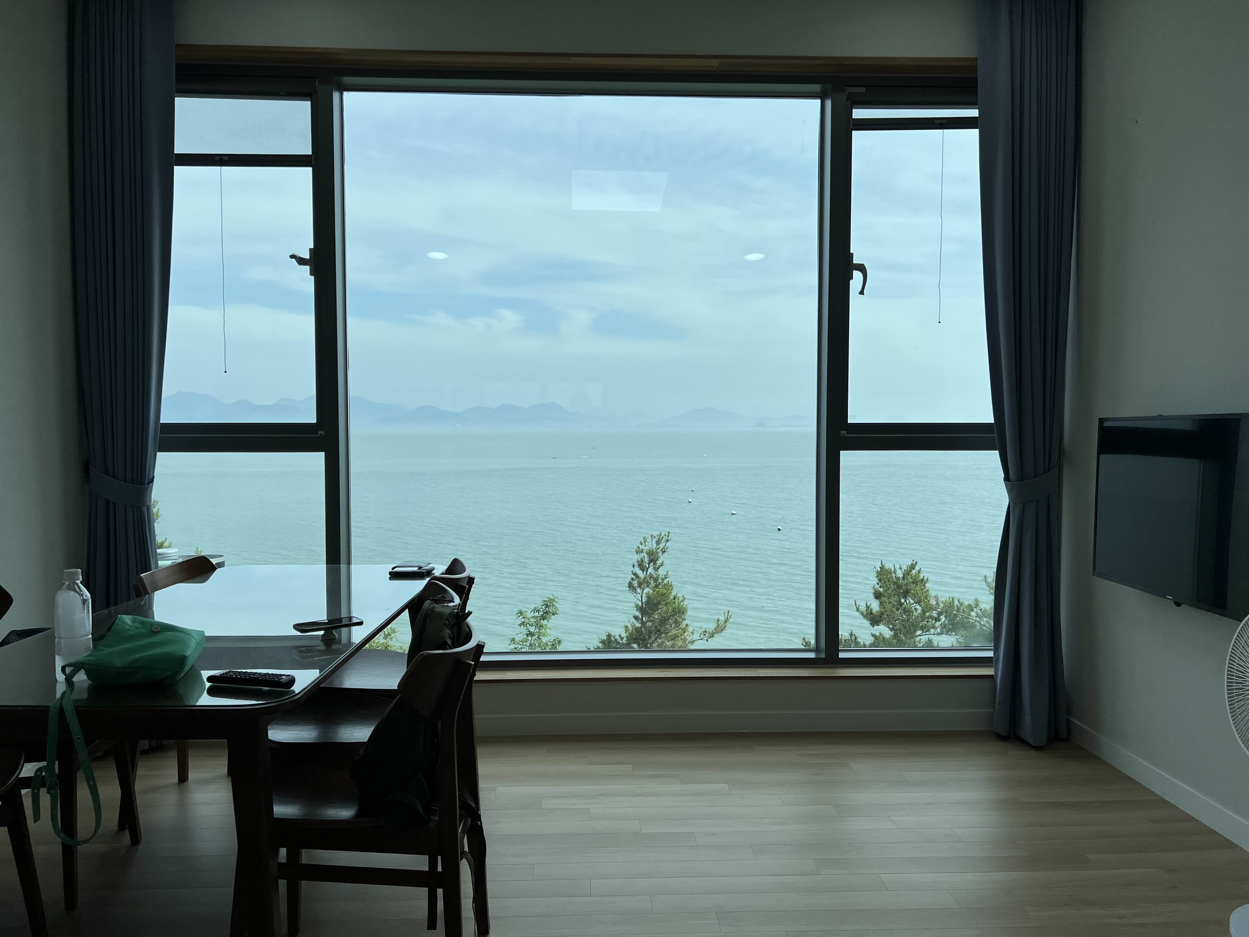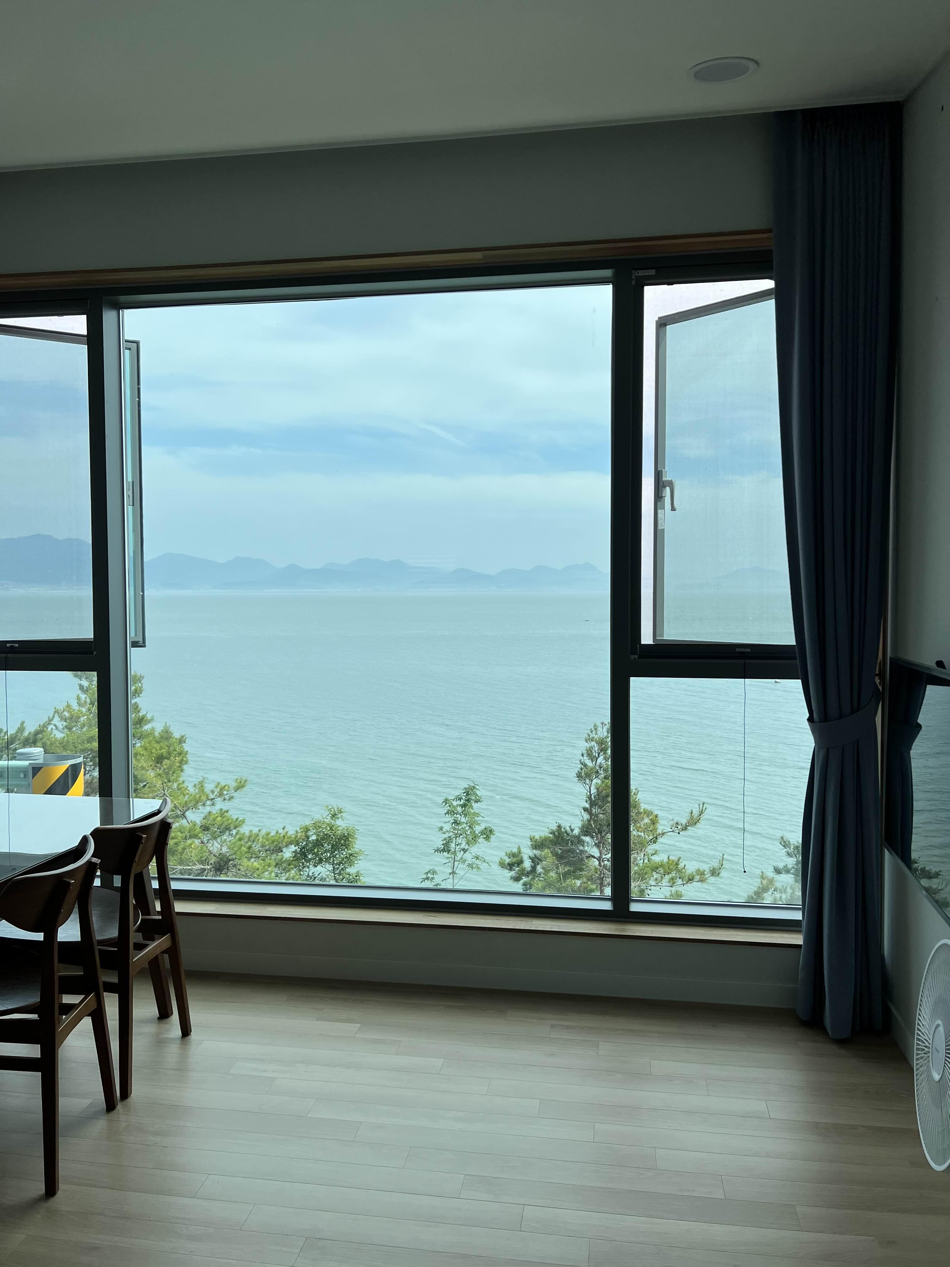 방과 거실 모두에서 바다가 잘 보이고 신축인 대신