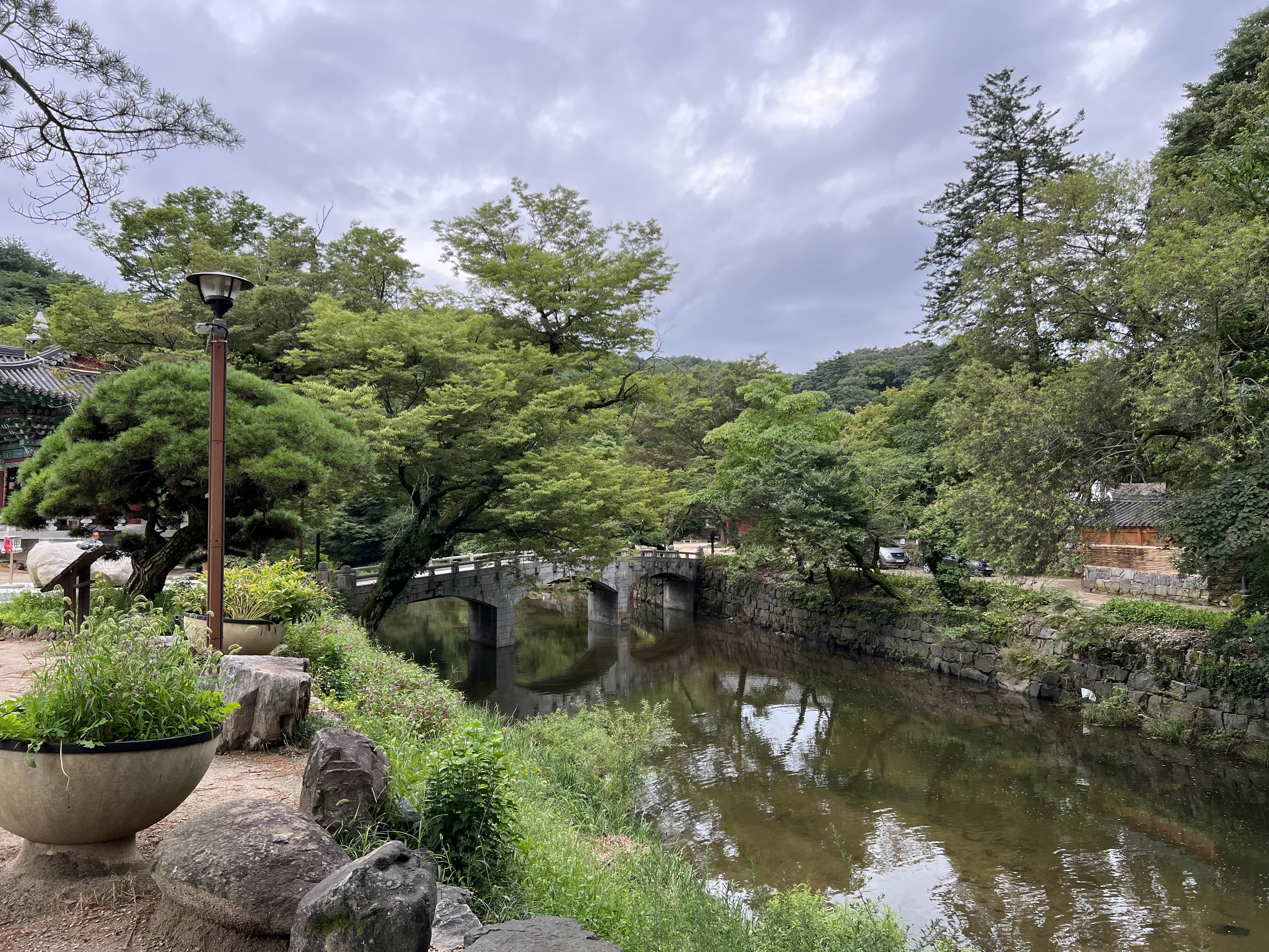 하천 위 돌다리를 건너니 해탈문이 보였다.