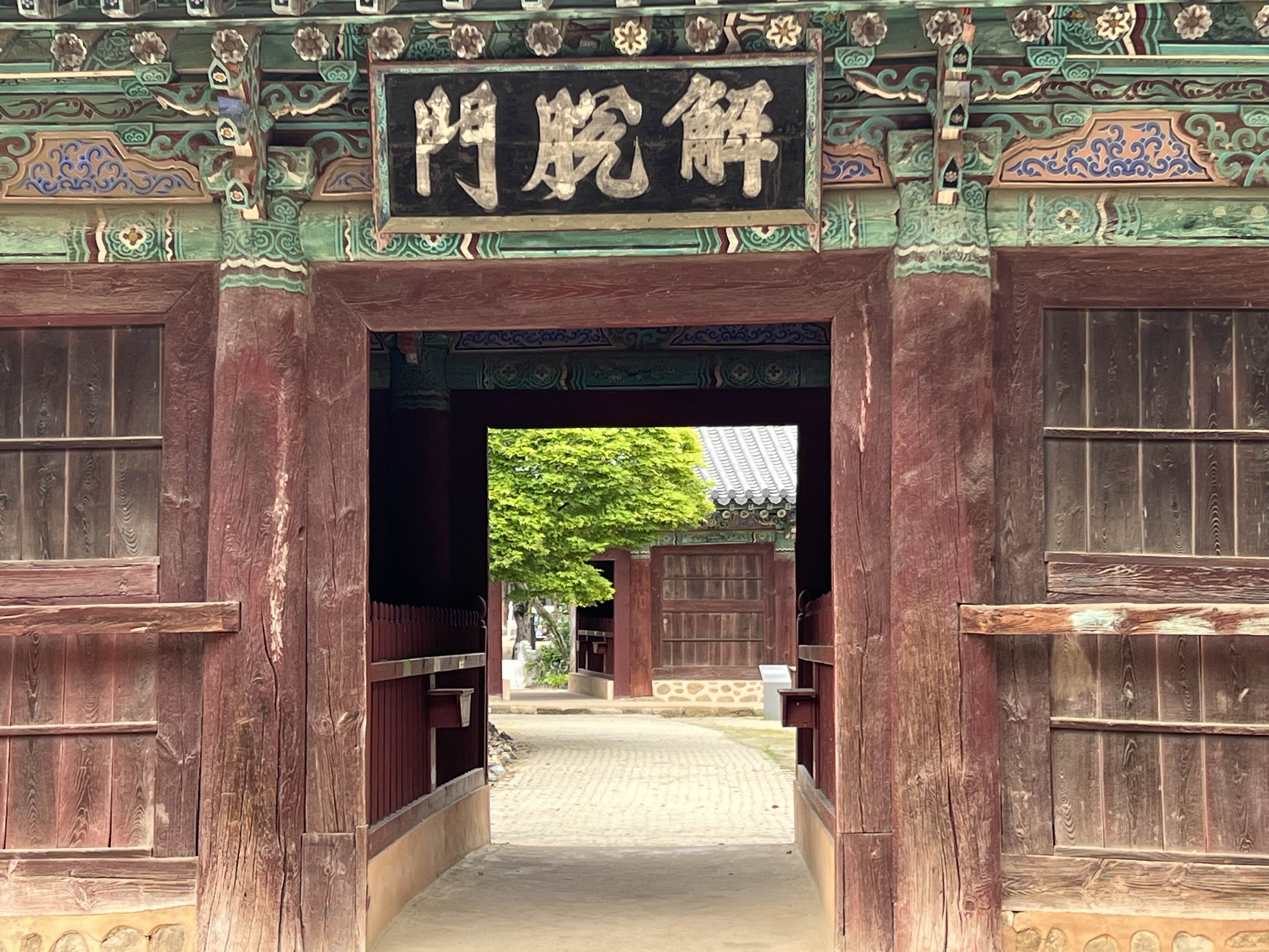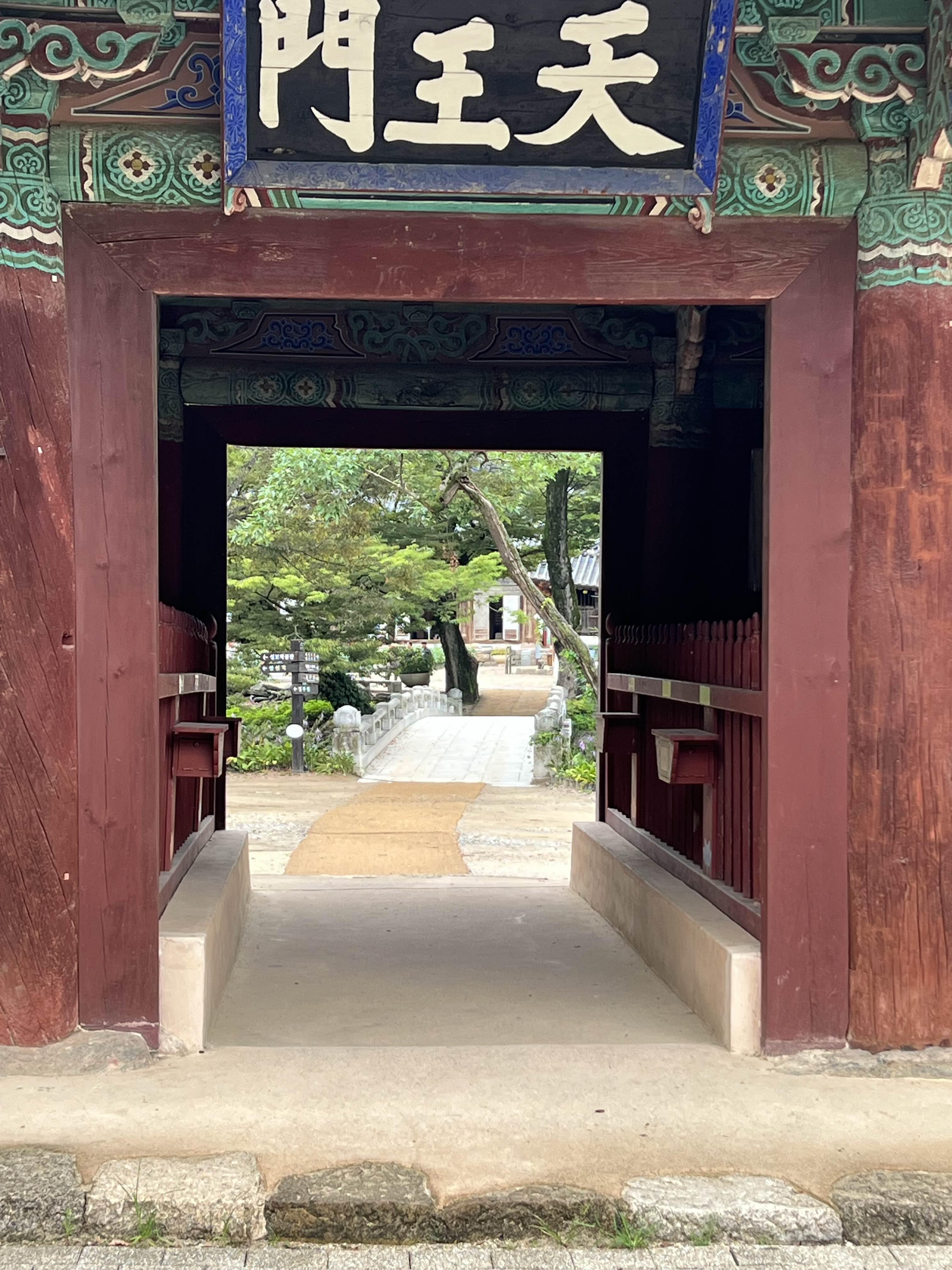 두 개의 문 사이로 경내를 액자처럼 보여주는구나