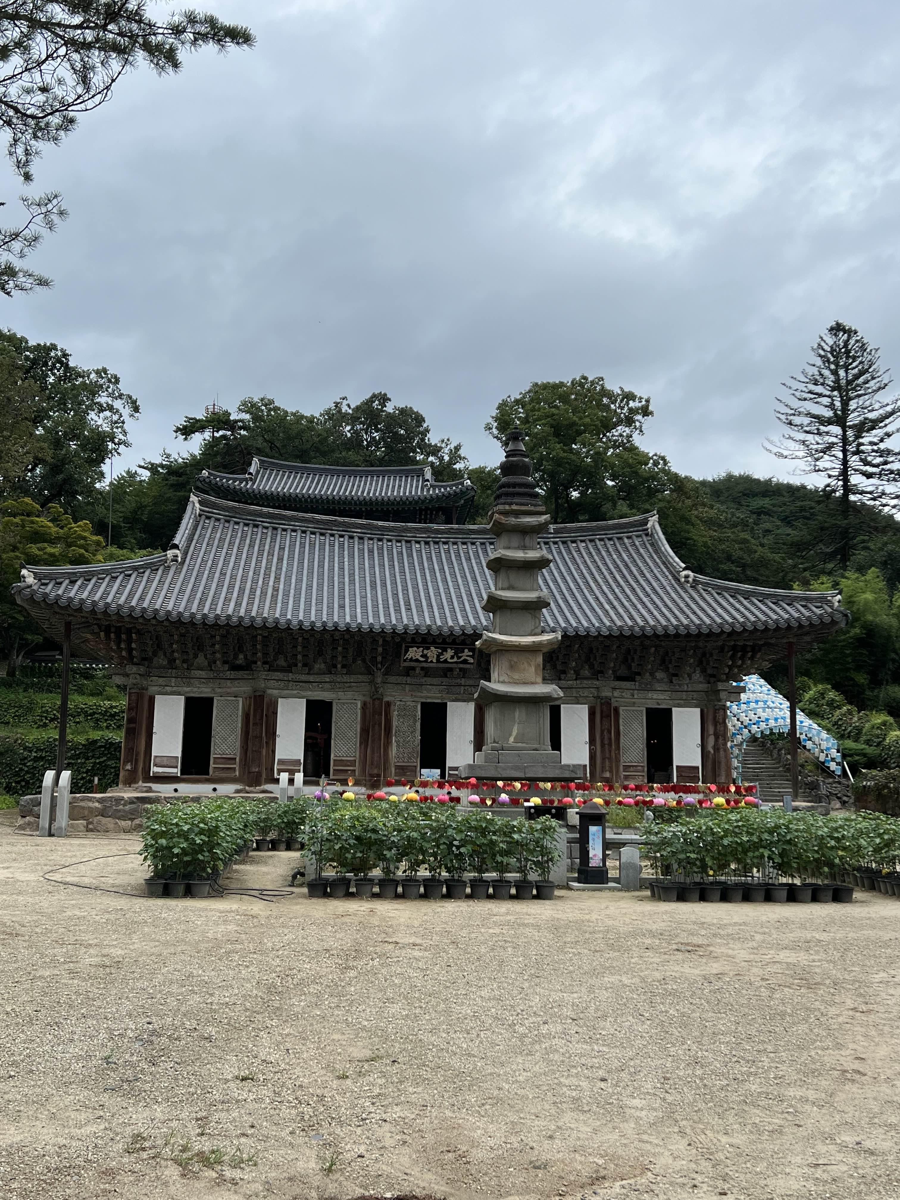 대광보전이 석탑 뒤로 바로 보이고
