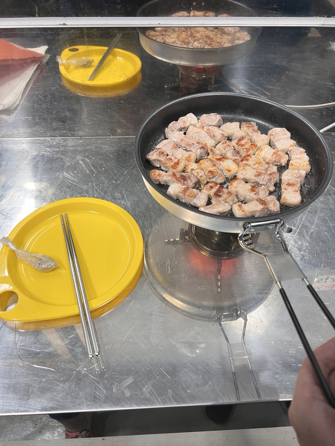 좀 부끄러웠다. 초보 티낸 것 같기도 하고 ㅎㅎ 아무튼 우리만 고기를 구워서 좀 머쓱...