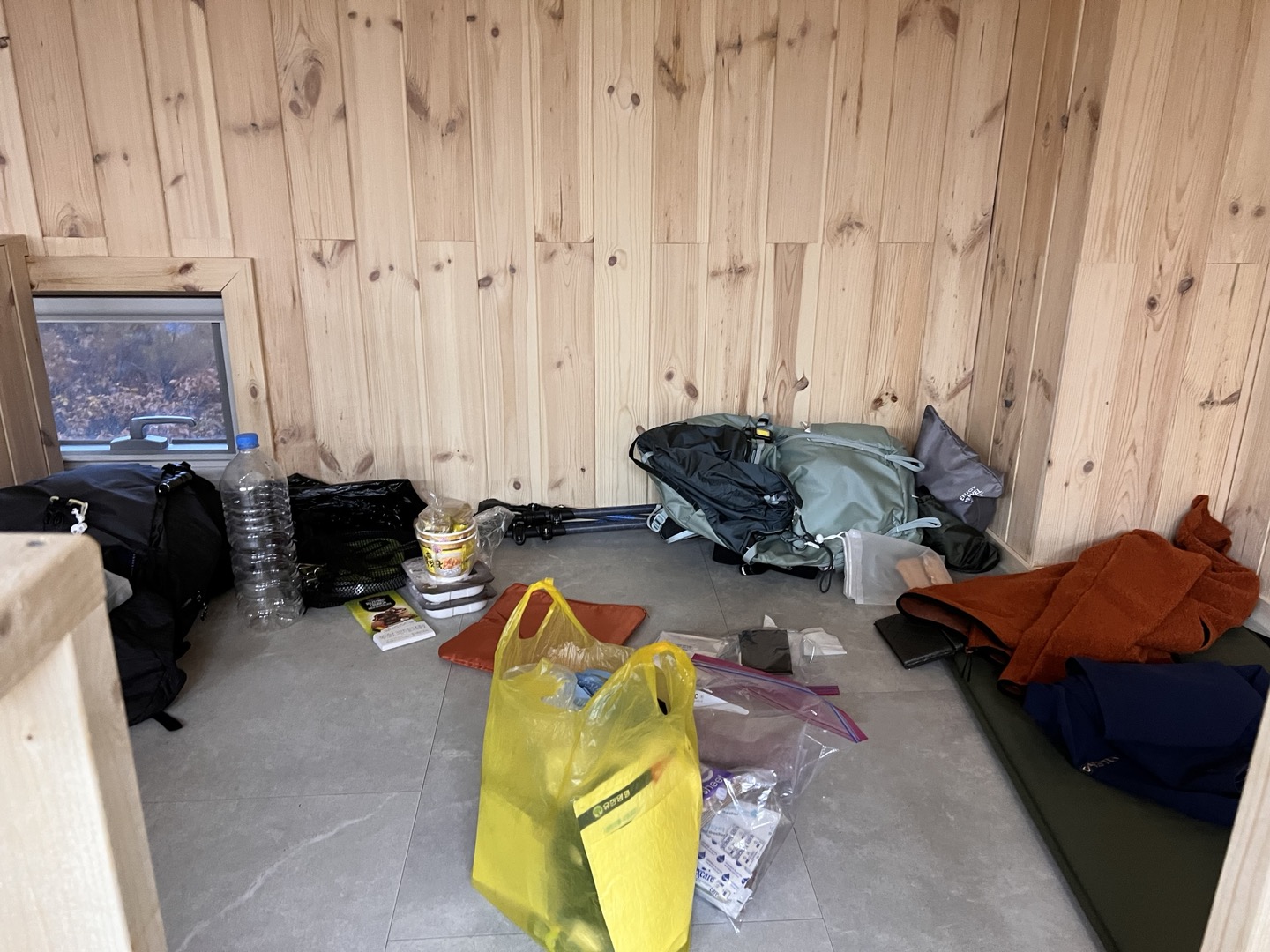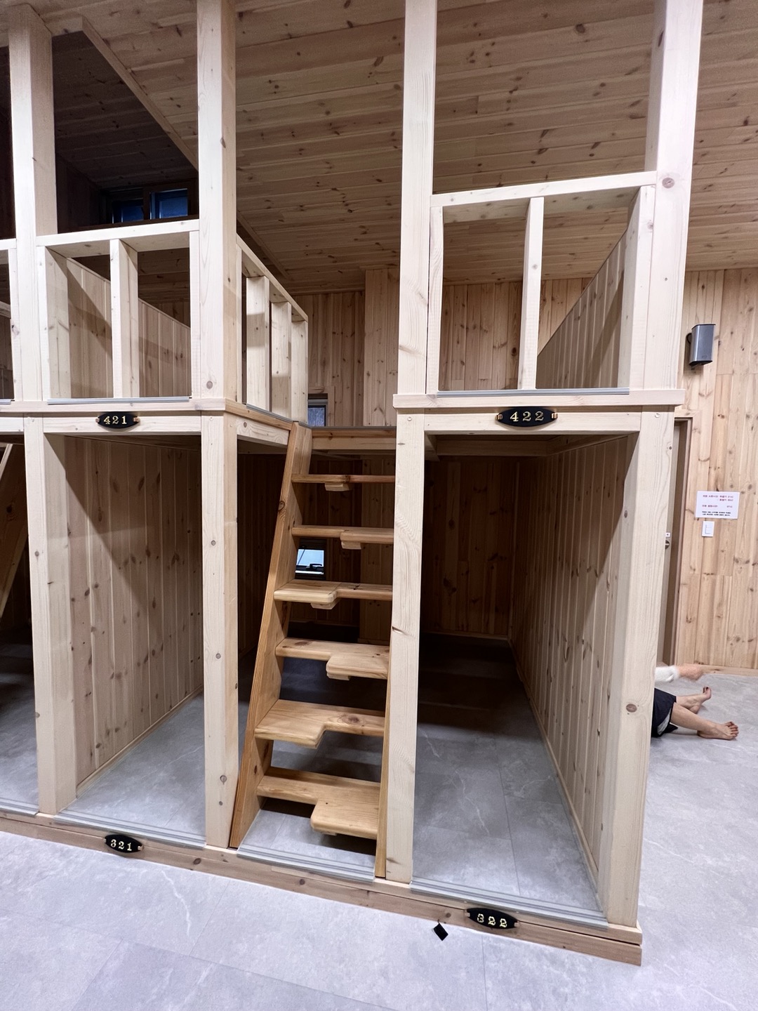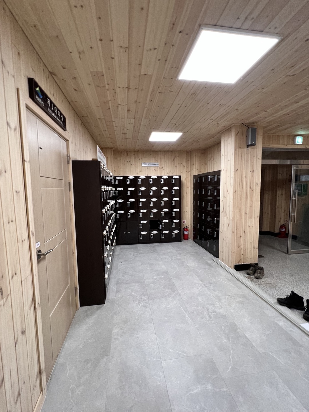 바닥은 너무 따듯하고, 다 새거이다. 편백나무 향이 정말 좋았다.