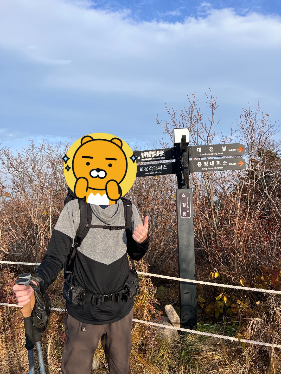 소청봉에 배낭 두고 대청봉 왕복을 하려고 했는데, 우리가 너무 느리고 초보여서 여기까지 온 것만으로도 감격했다.