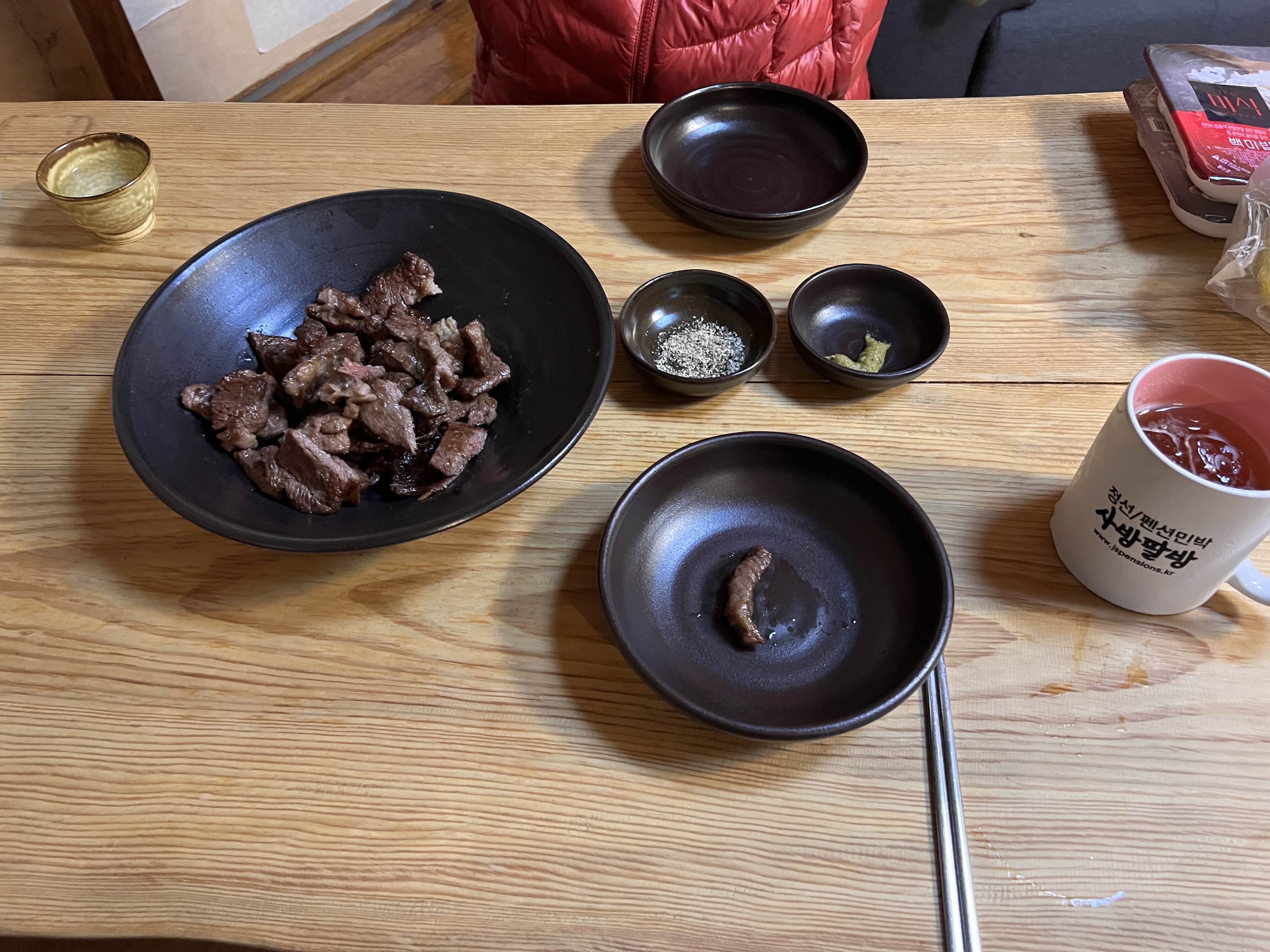 진부 읍내에 가서 고기를 사왔다. 꿀맛
