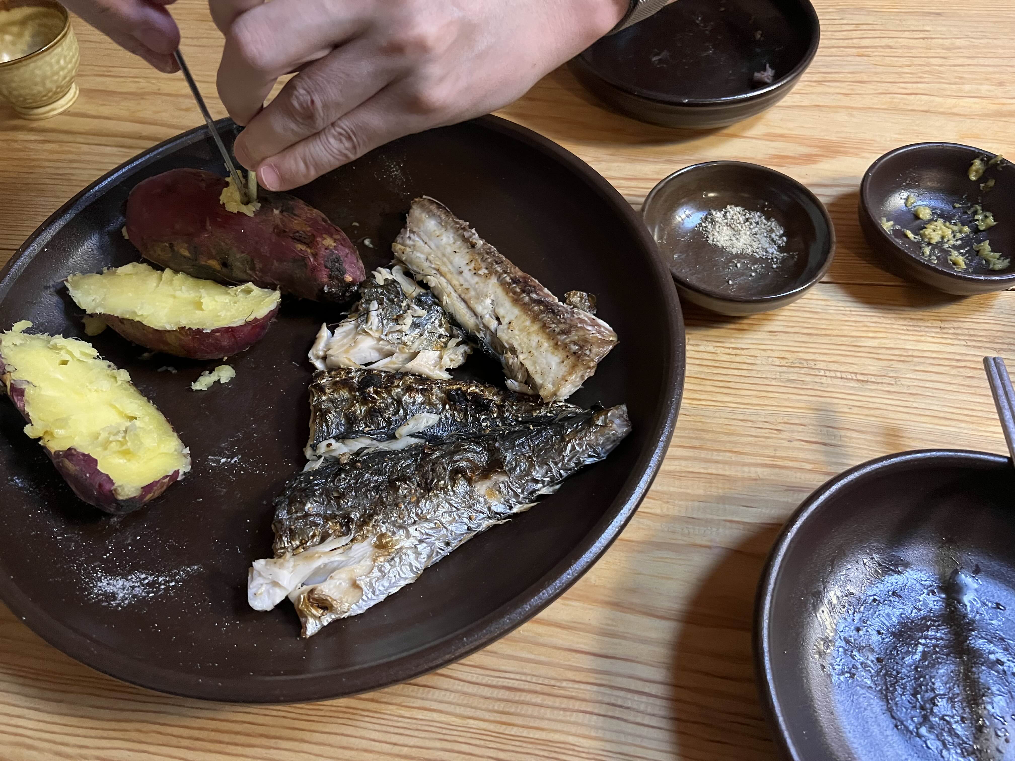 고구마도 챙겨 주셨다. 갑작스럽게 예약하고 여행을 계획한 거라 고기 말고는 준비한 게 없었는데 너무 잘 먹었다.