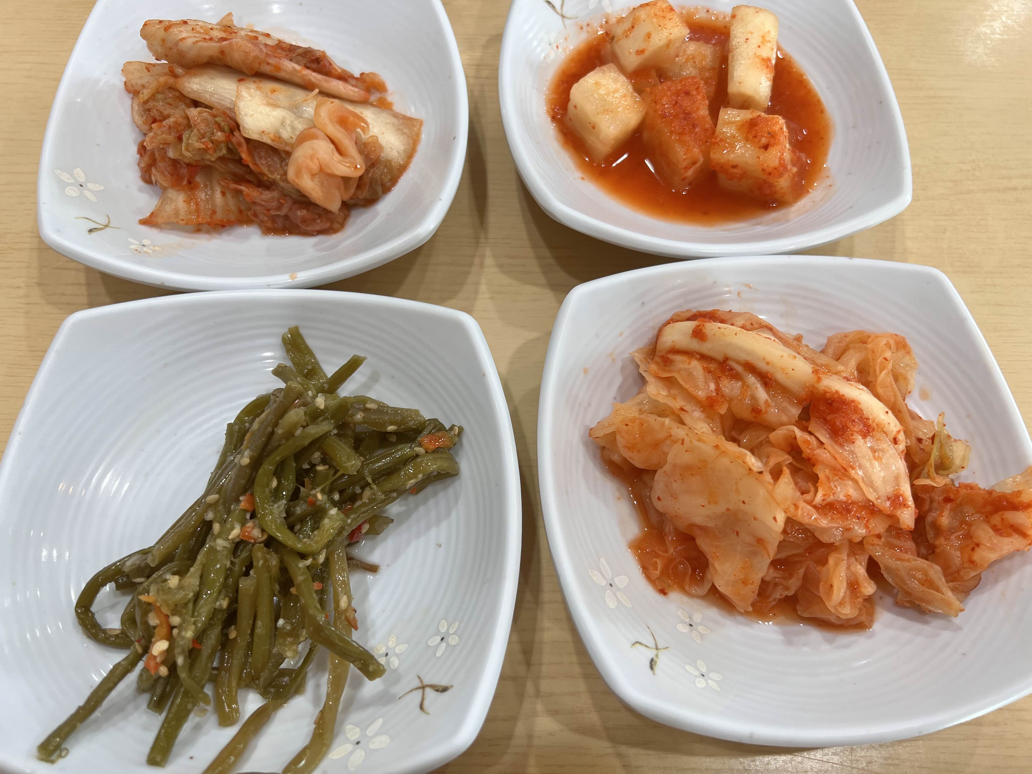 반찬이 나왔는데, 양배추 김치와 고구마줄기 무침이 너무 맛있어서 놀랐다.