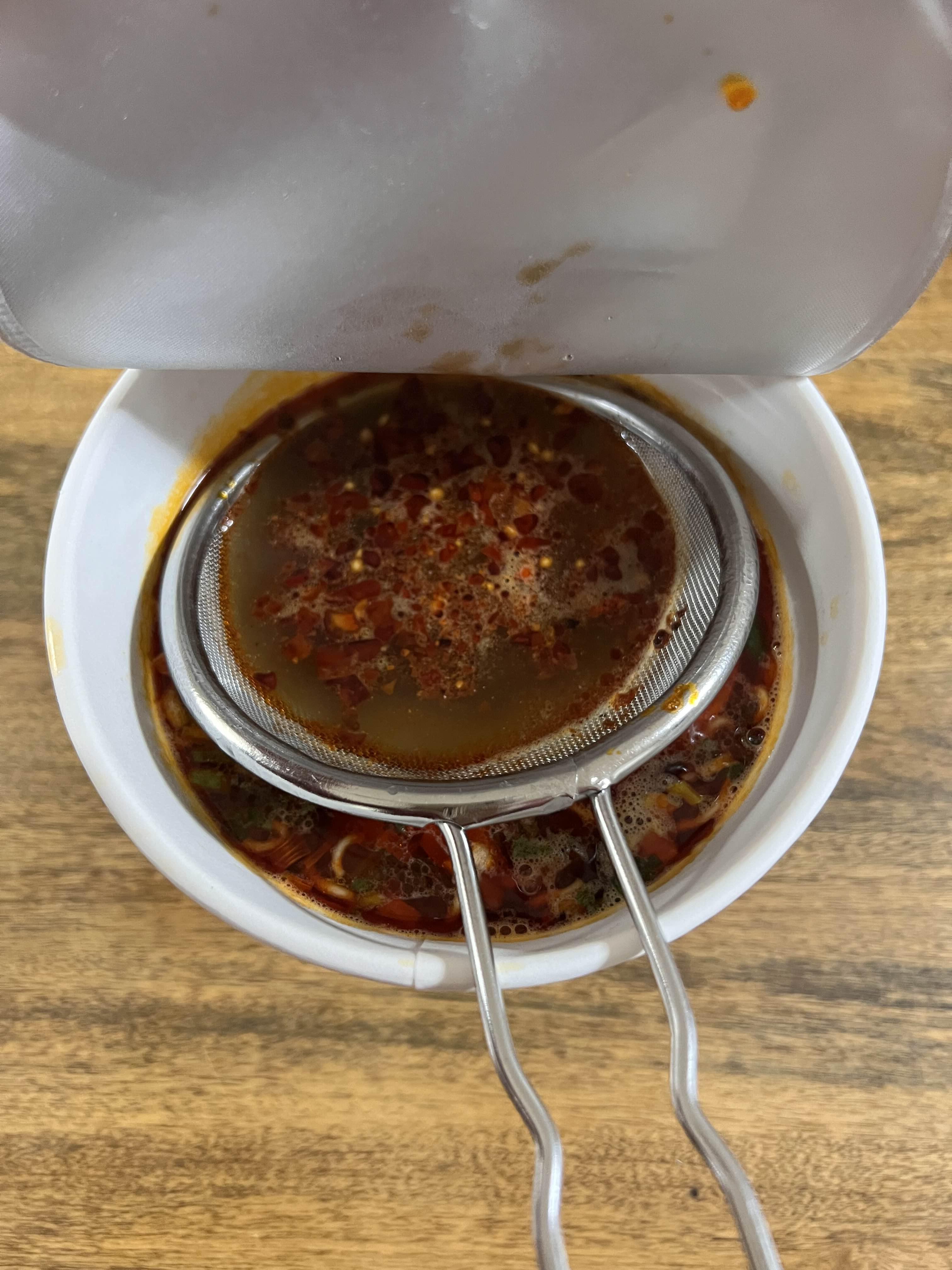 그래서 작은 체에 라조장을 밥숟가락으로 두 스픈 넣어(걸러 내니 양이 2배여야 하더라)