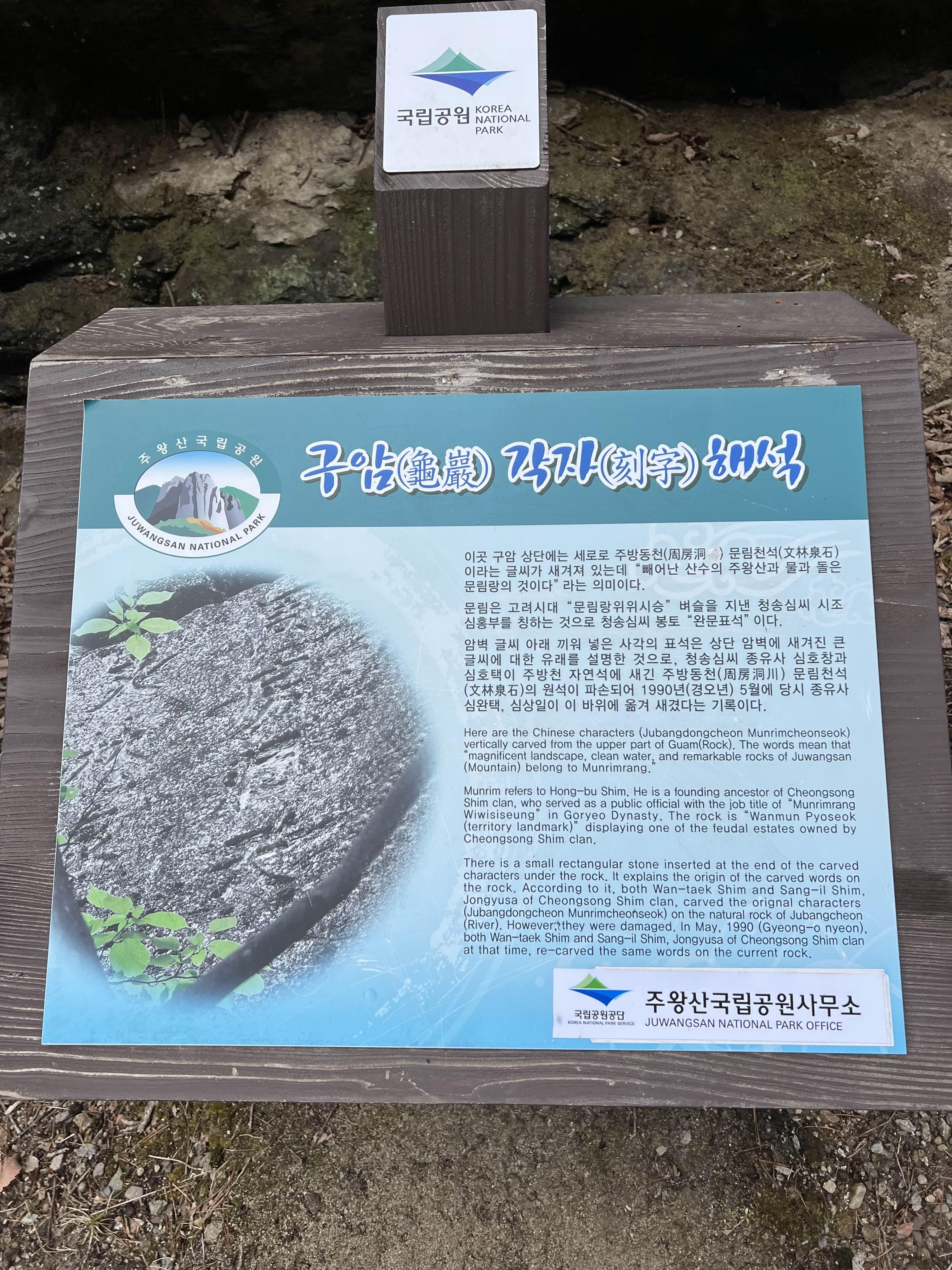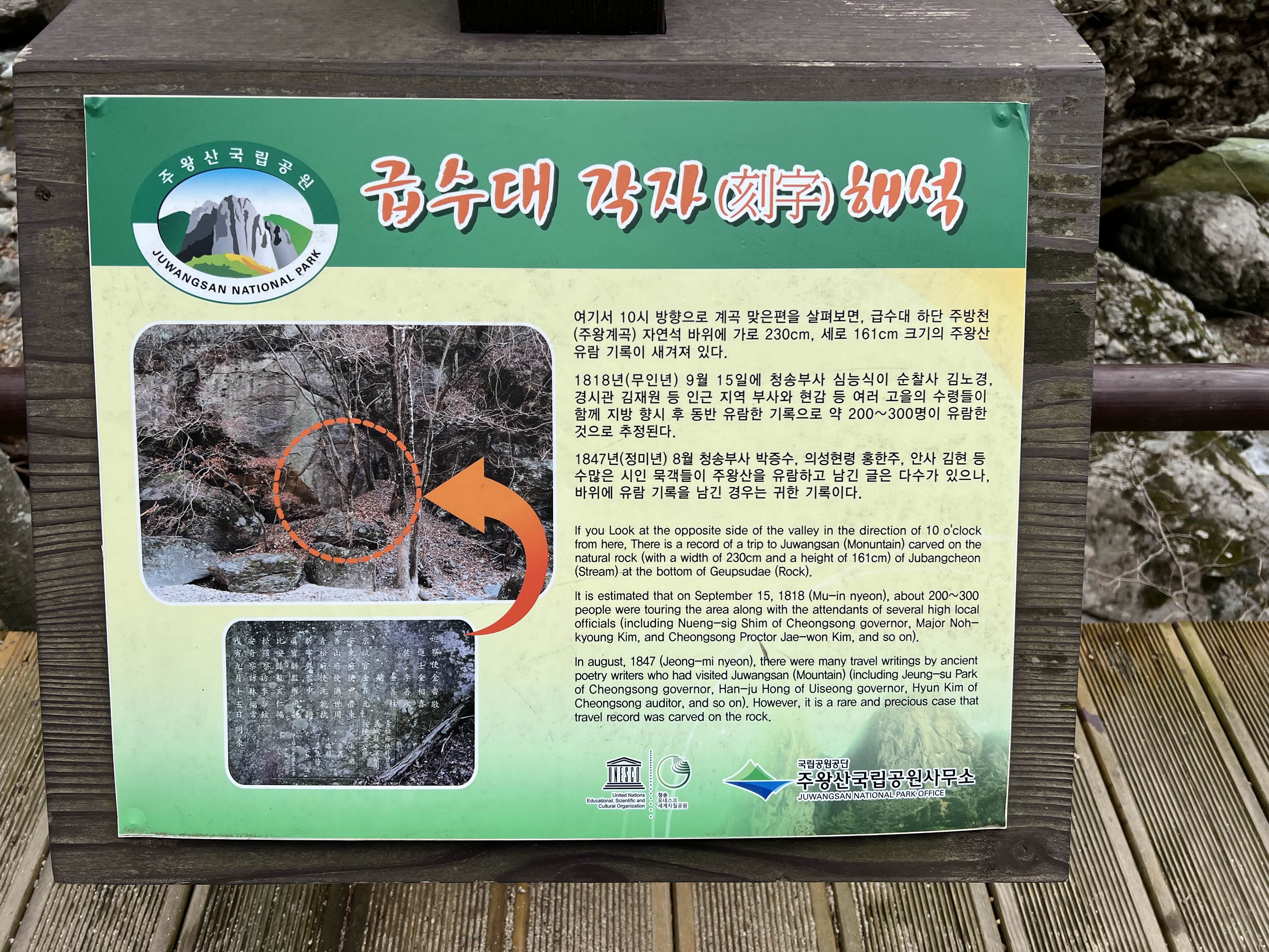 계곡 너머에 유람온 선비들이 기록을 남겨 뒀단다.