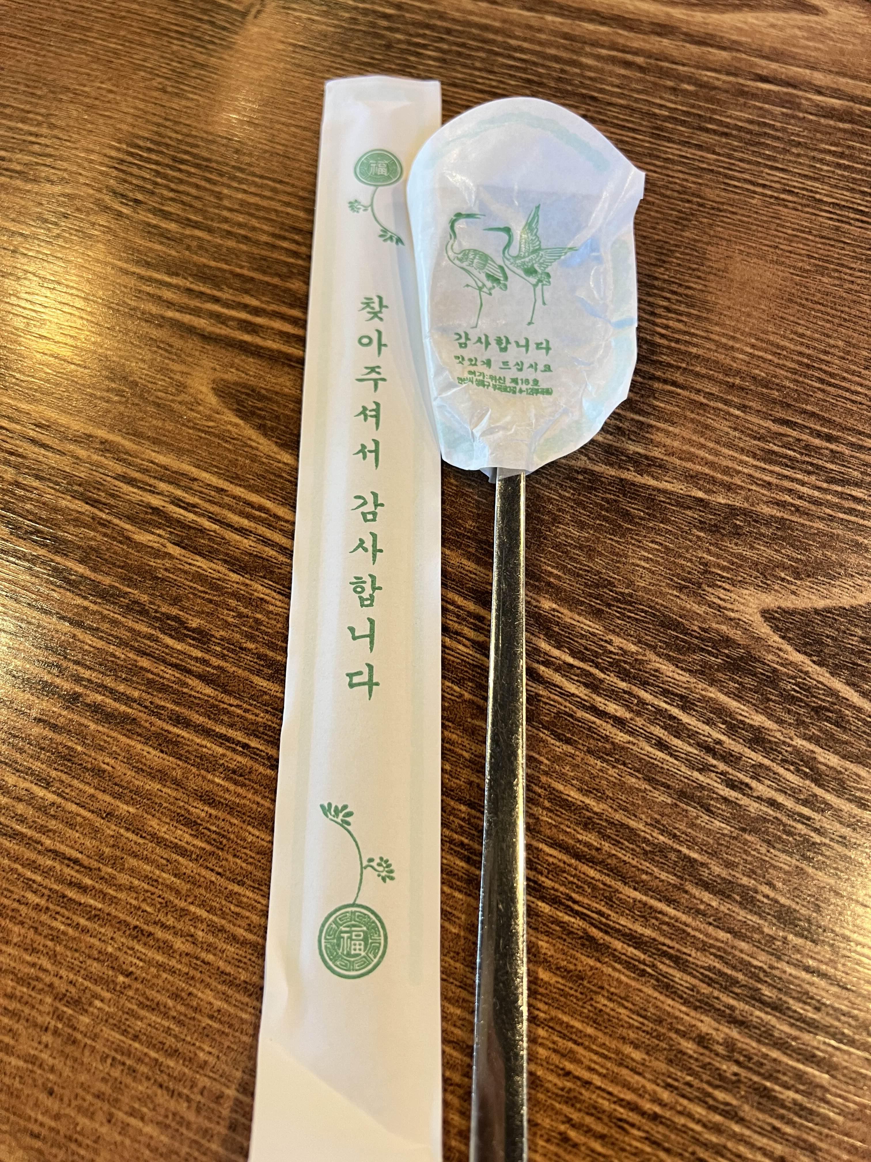 좋은 식당 맞는 게 이렇게 수저가 개별 포장돼 있다.