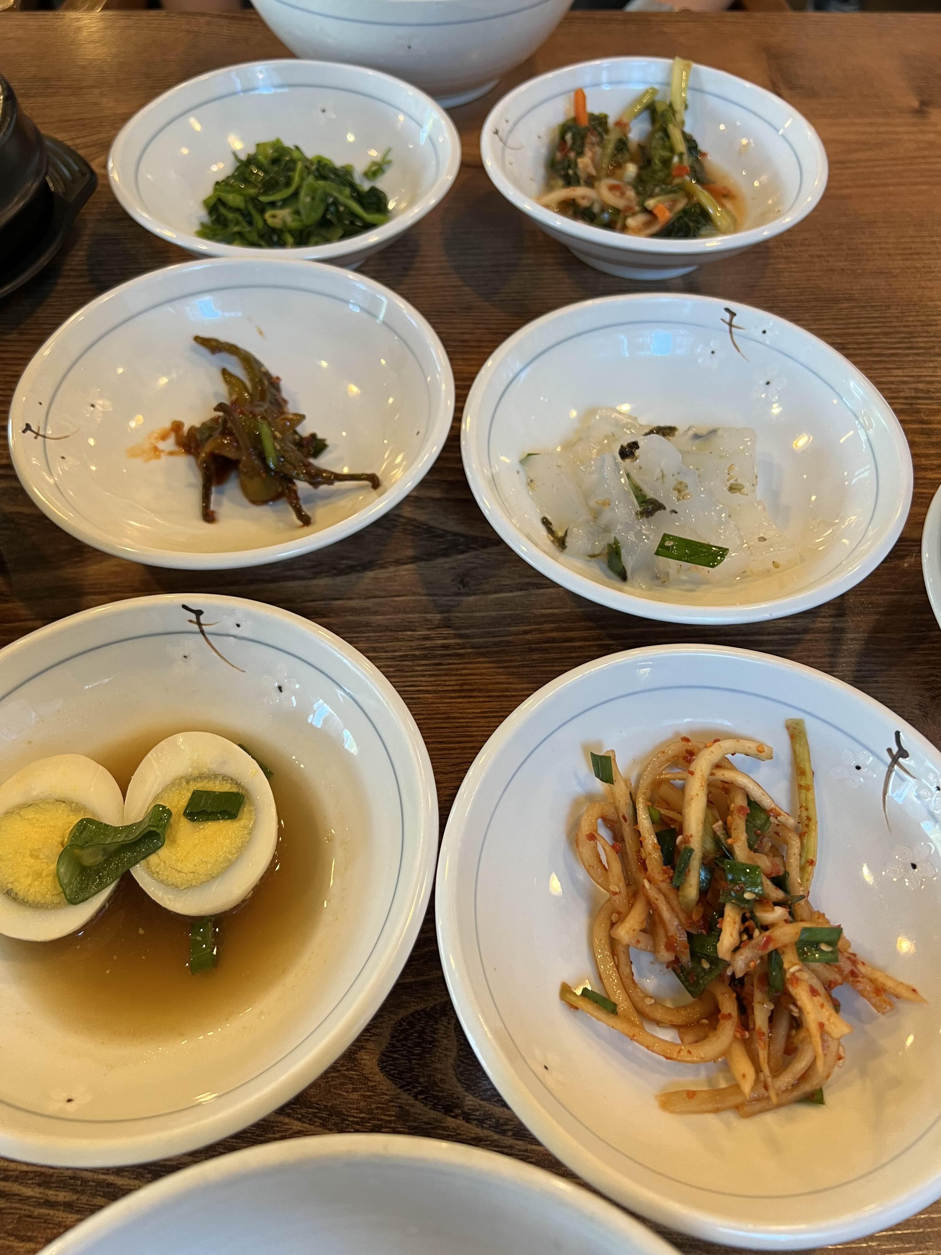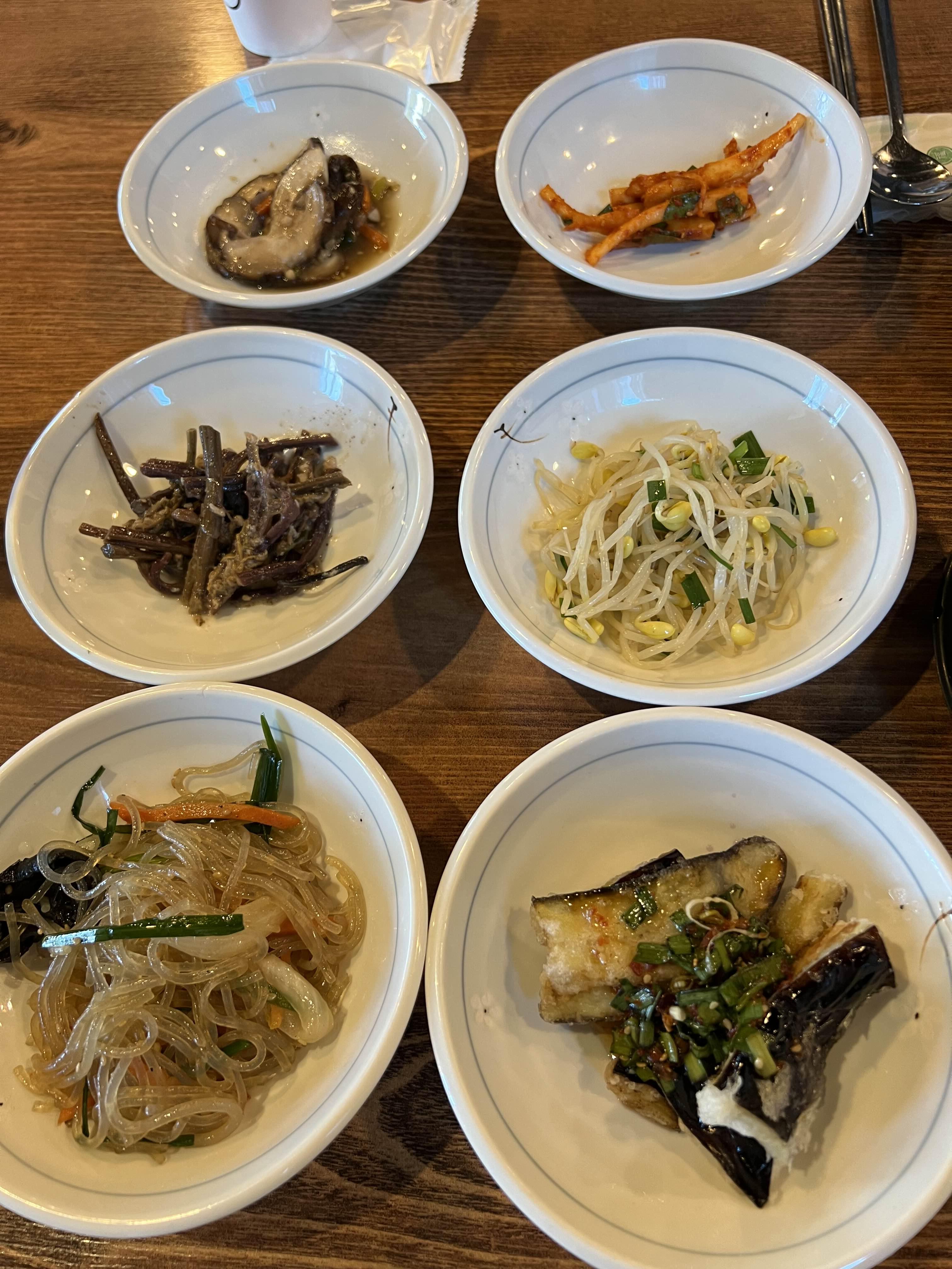 고추지 장아찌, 무채, 청포묵 등등 모든 반찬이 맛있다.
