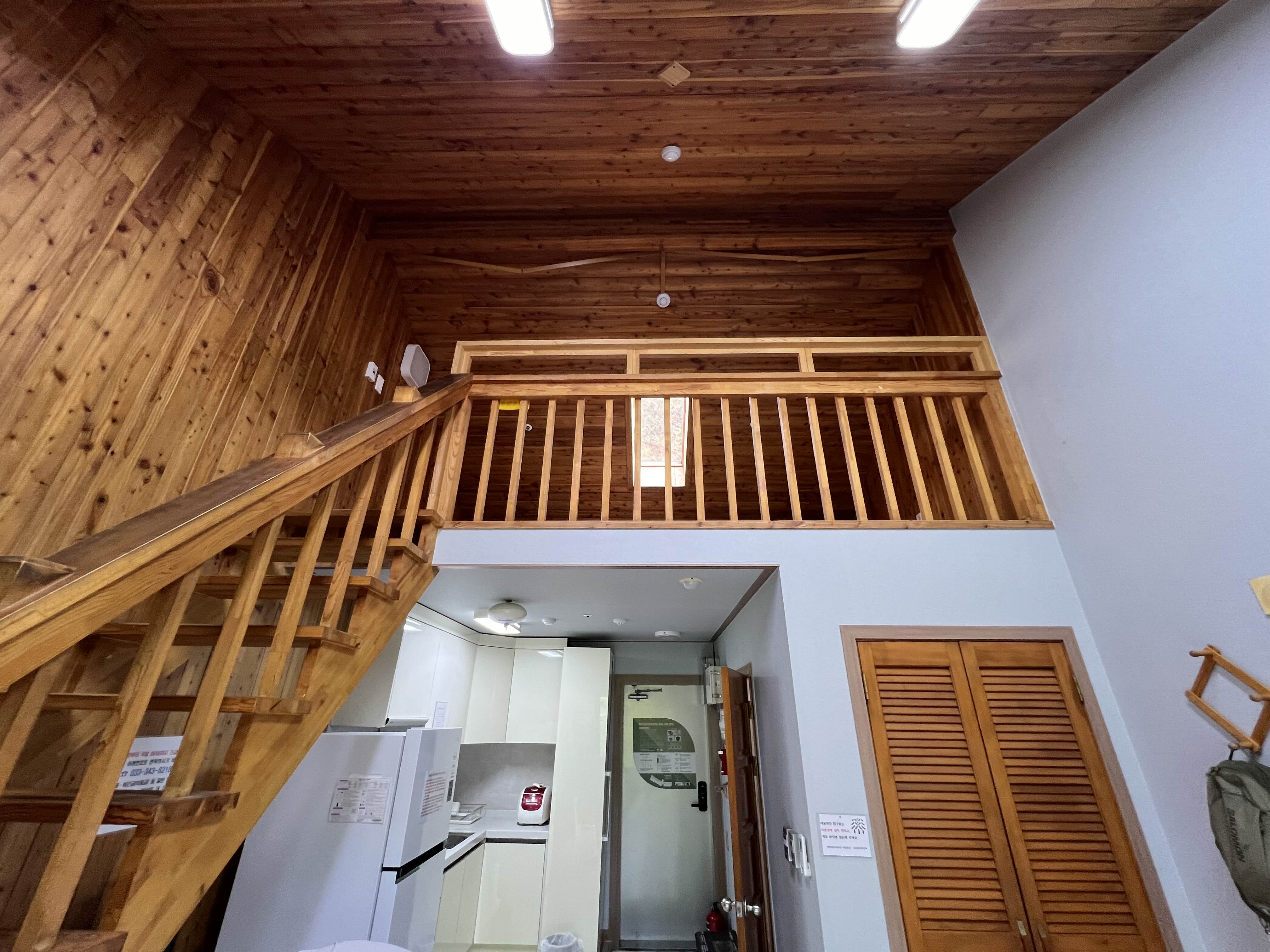 목재로 지은 건물이라 삐걱거리는 층간소음이 있다고 안내판이 있었고, 만실이었음에도
