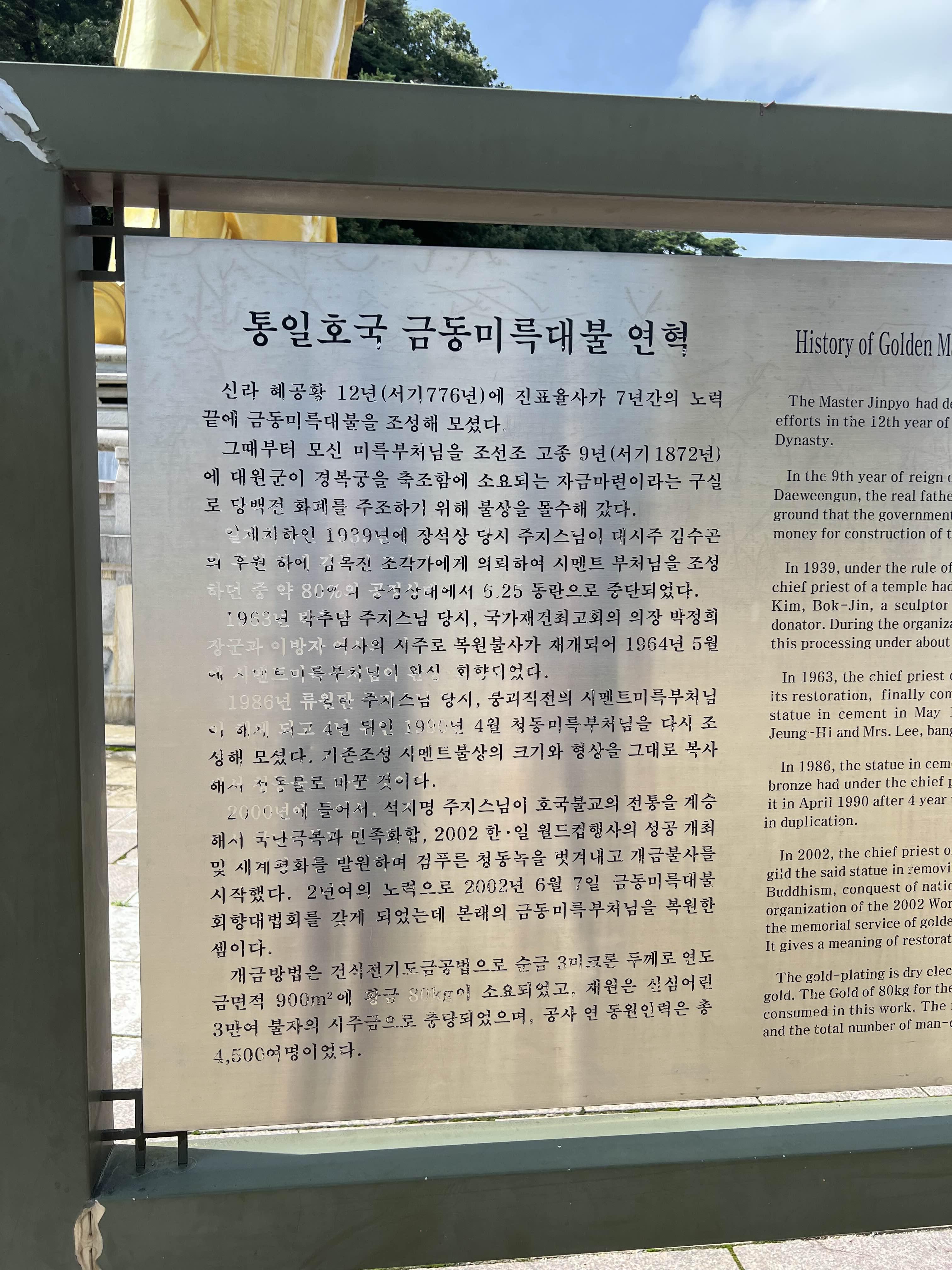 법주사 거대 부처님상은 현대식 작품은 아니고, 신라 때부터 이어져 온 부처님이다.