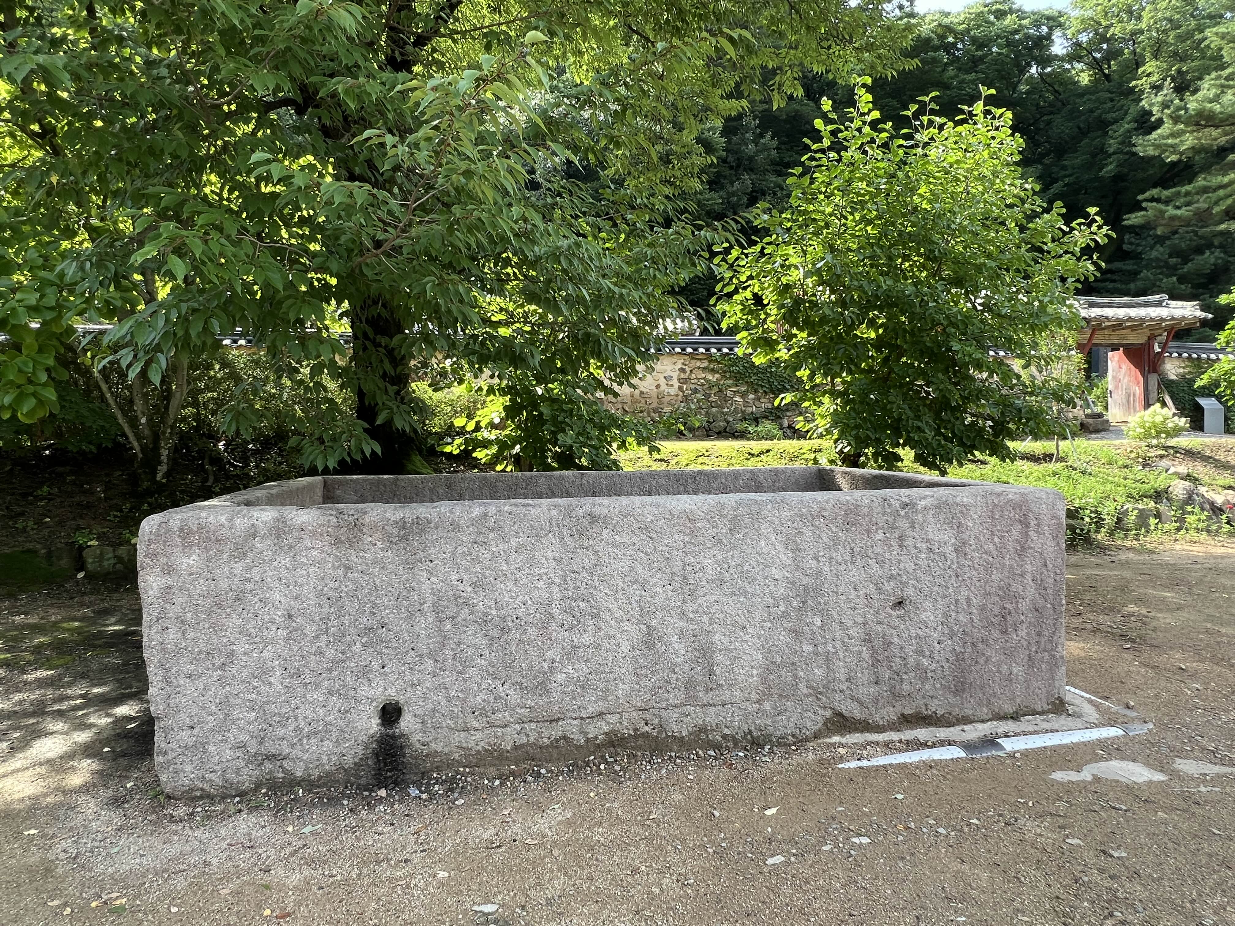 물을 담기 위해 만든 돌수조인데, 여기서 배추도 절이고 쌀도 씻고 그랬을라나