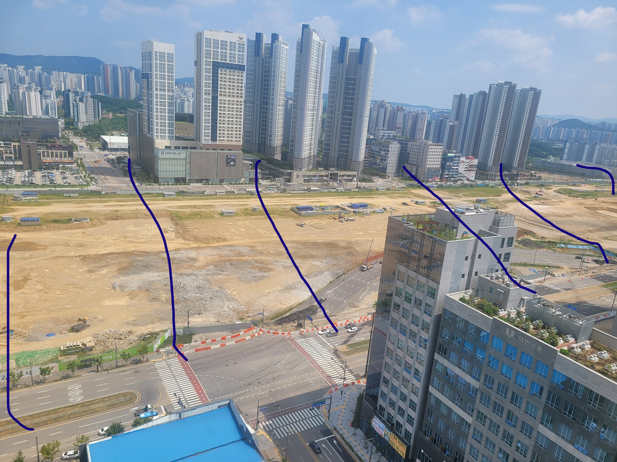 도로 개발이 거의 완료되고 동서 도로 개통만 남은 상황인 상황