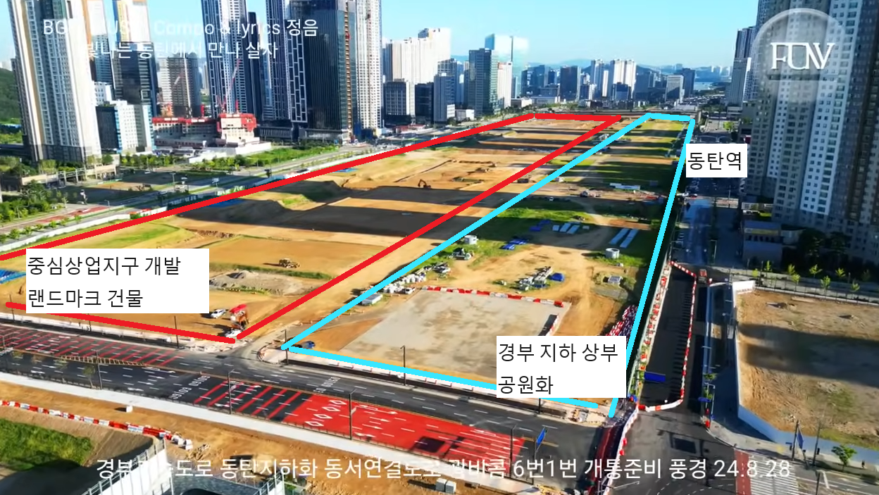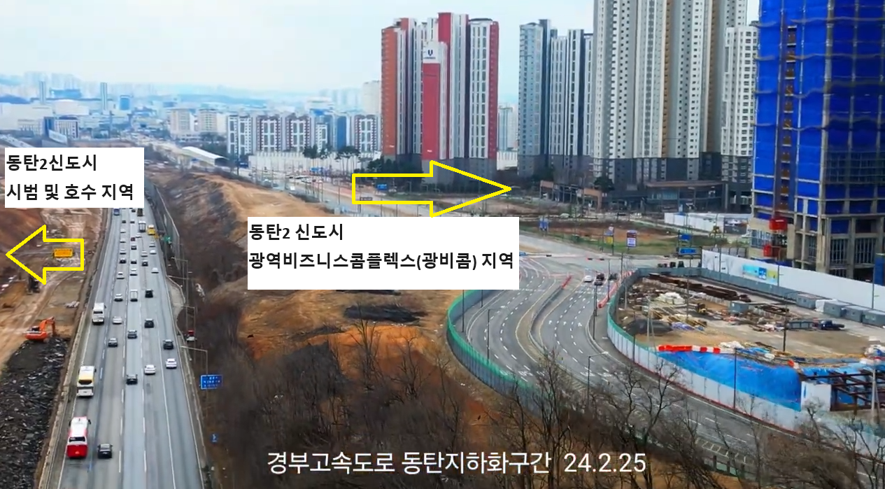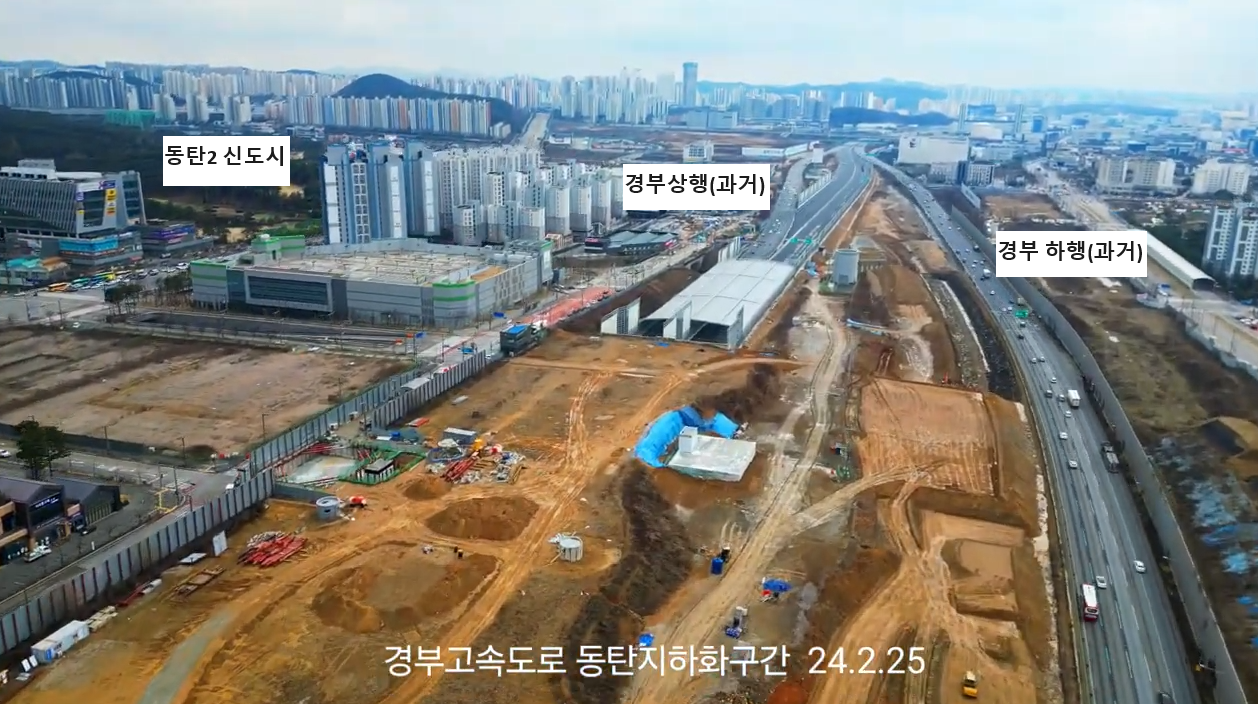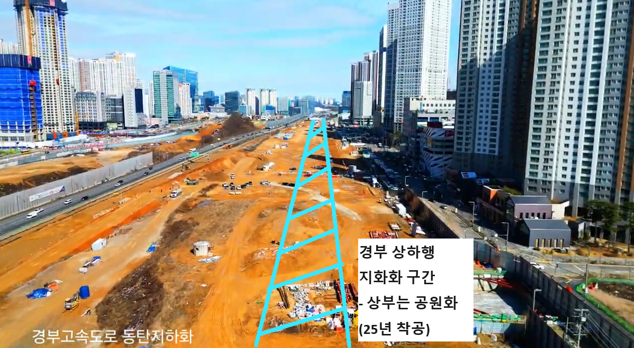 그래서 경부를 최대한 동탄역 쪽으로 붙여 직선화하면서 동시에 위에 뚜껑을 덮어 지하화하는 개발이 시작되었다.