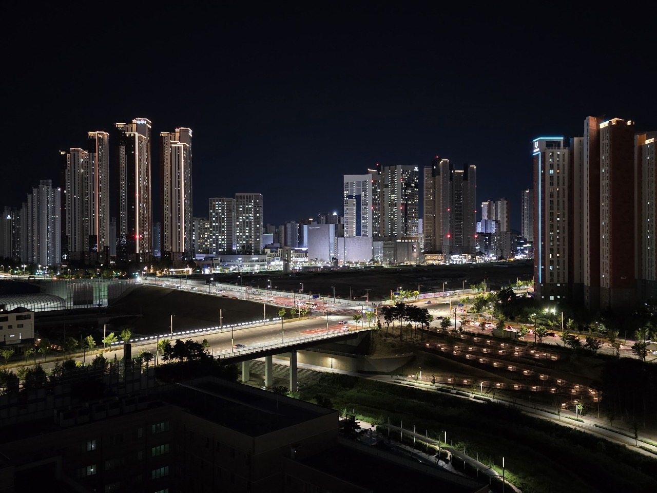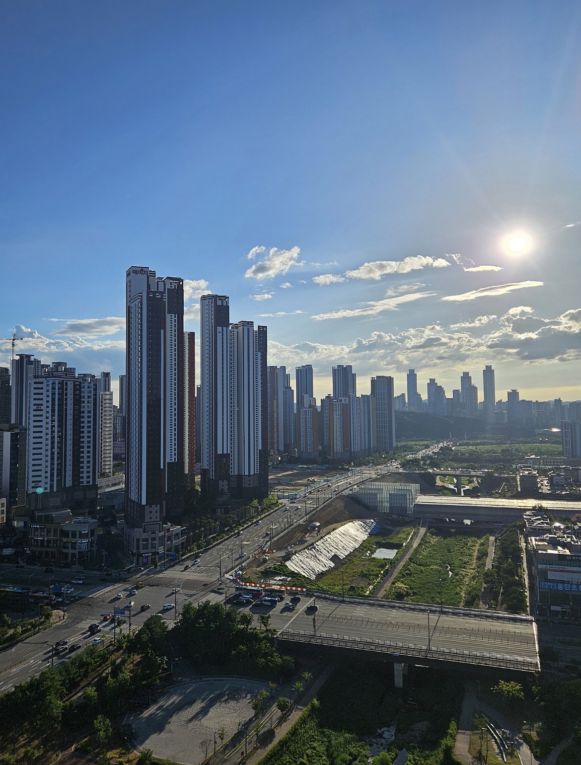 동탄역쪽에서 저 멀리 메타폴리스 쪽으로 경부 위로 도로가 단절되지 않고 쭉 이어지게 되었다.