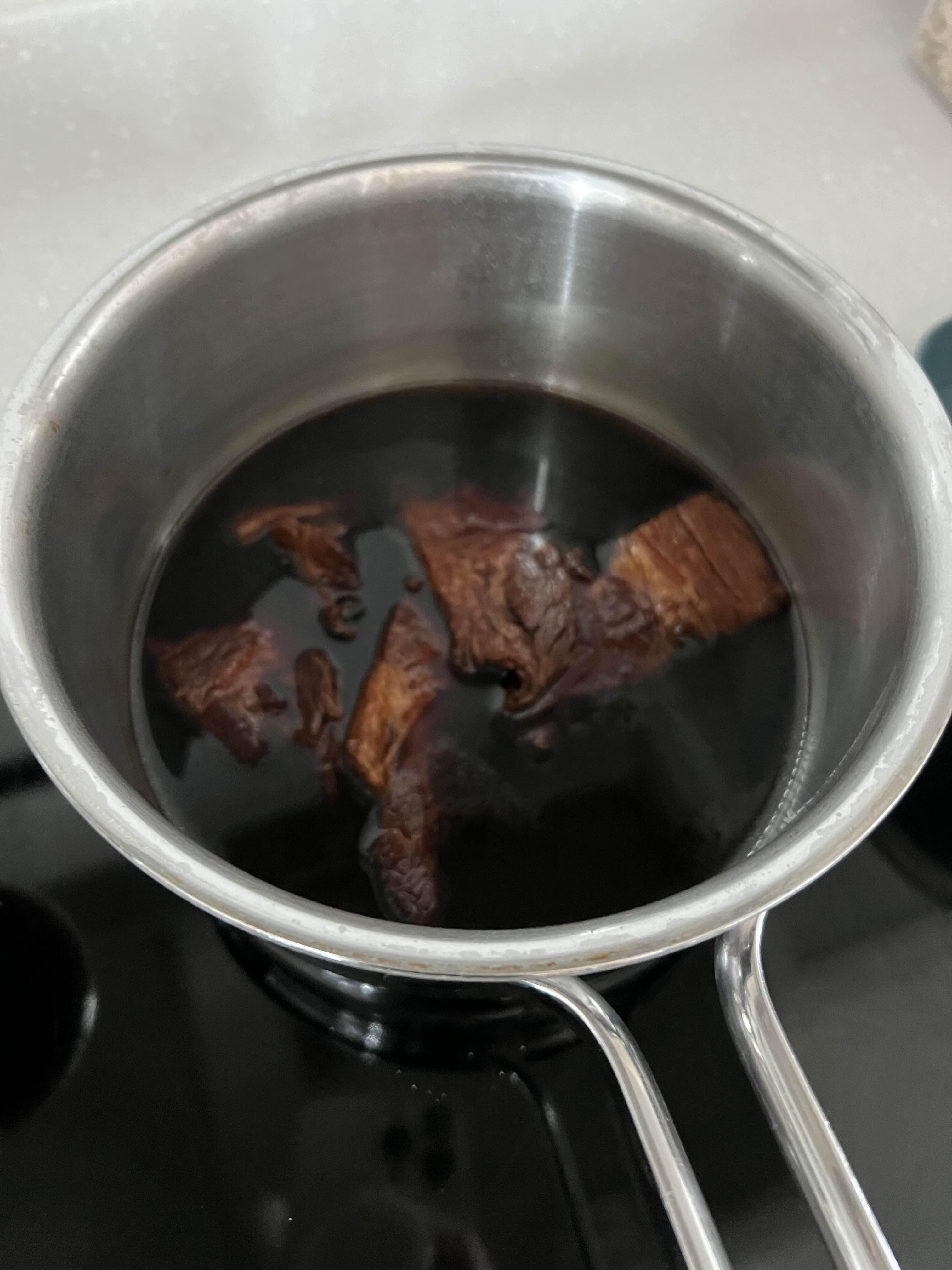 수육 고기가 있어서 후다닥 간장, 설탕에 한 3분 졸여줬다.