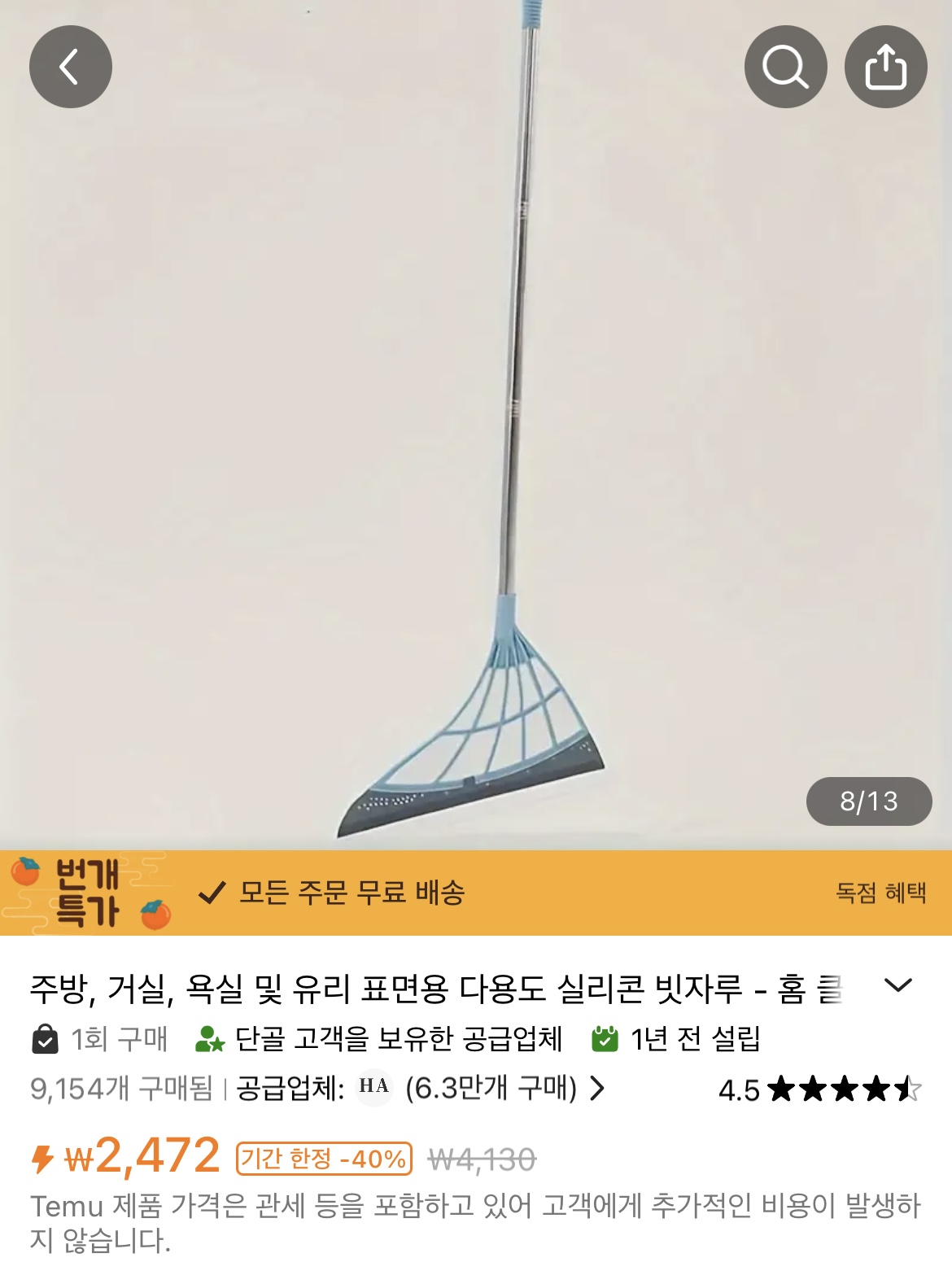 욕실 청소 후 스퀴지 겸 빗자루로 쓰려고 2개 주문했다.