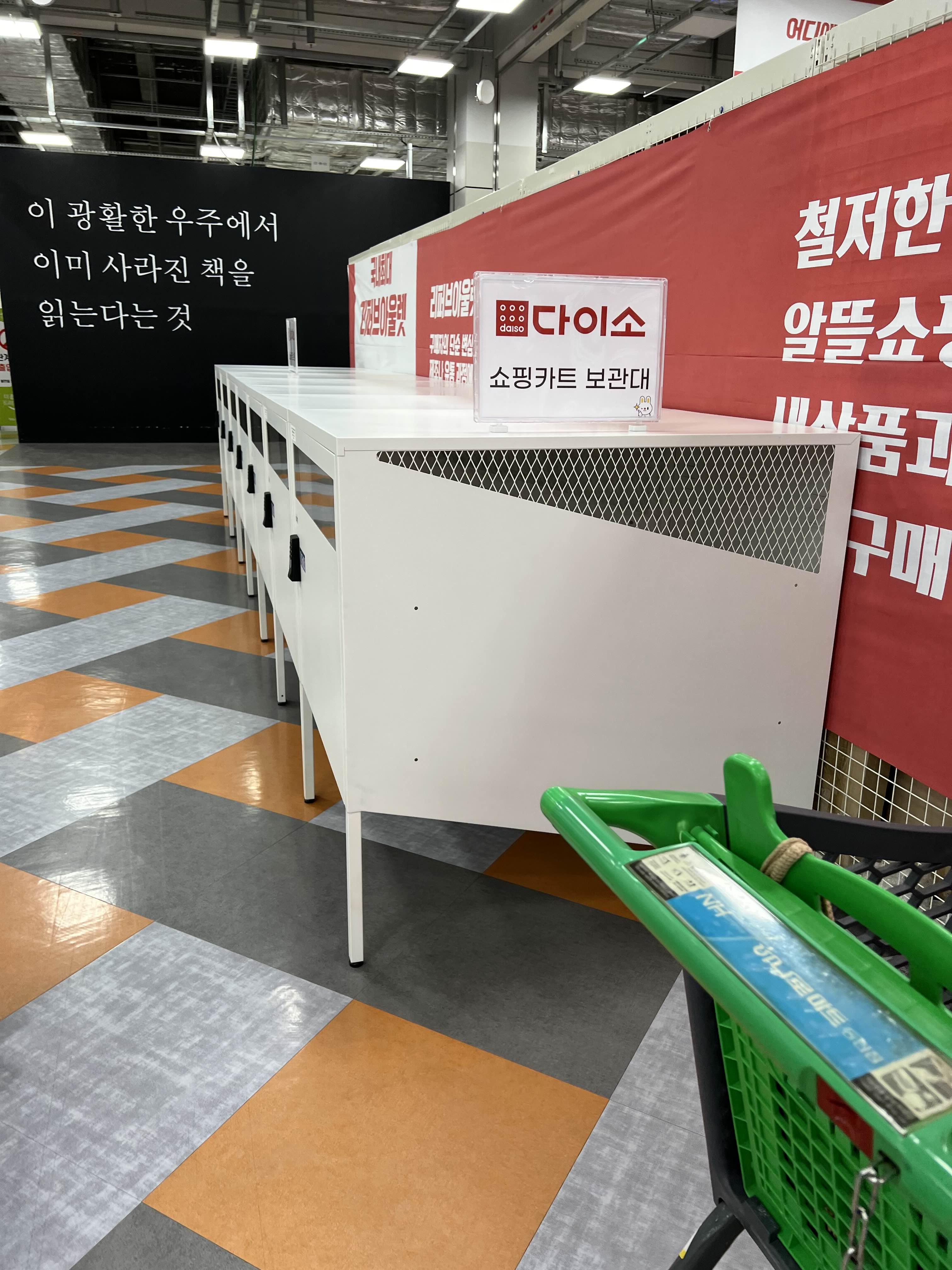 다이소 앞에 쇼핑카트 보관대가 있더라
