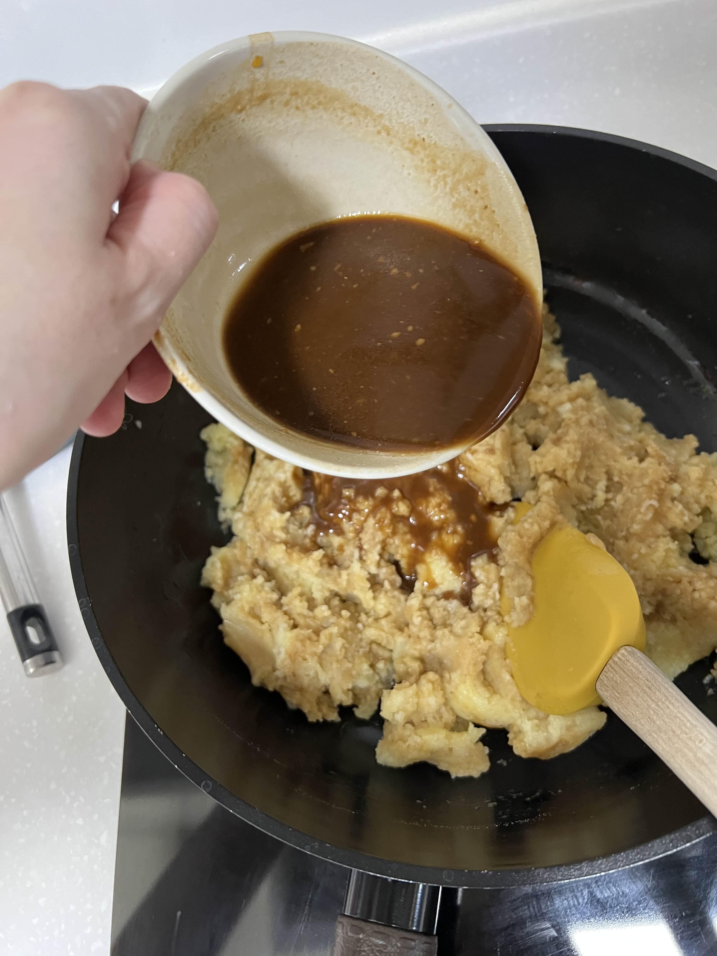 이후 소스를 조금씩 부어가며 섞는다.