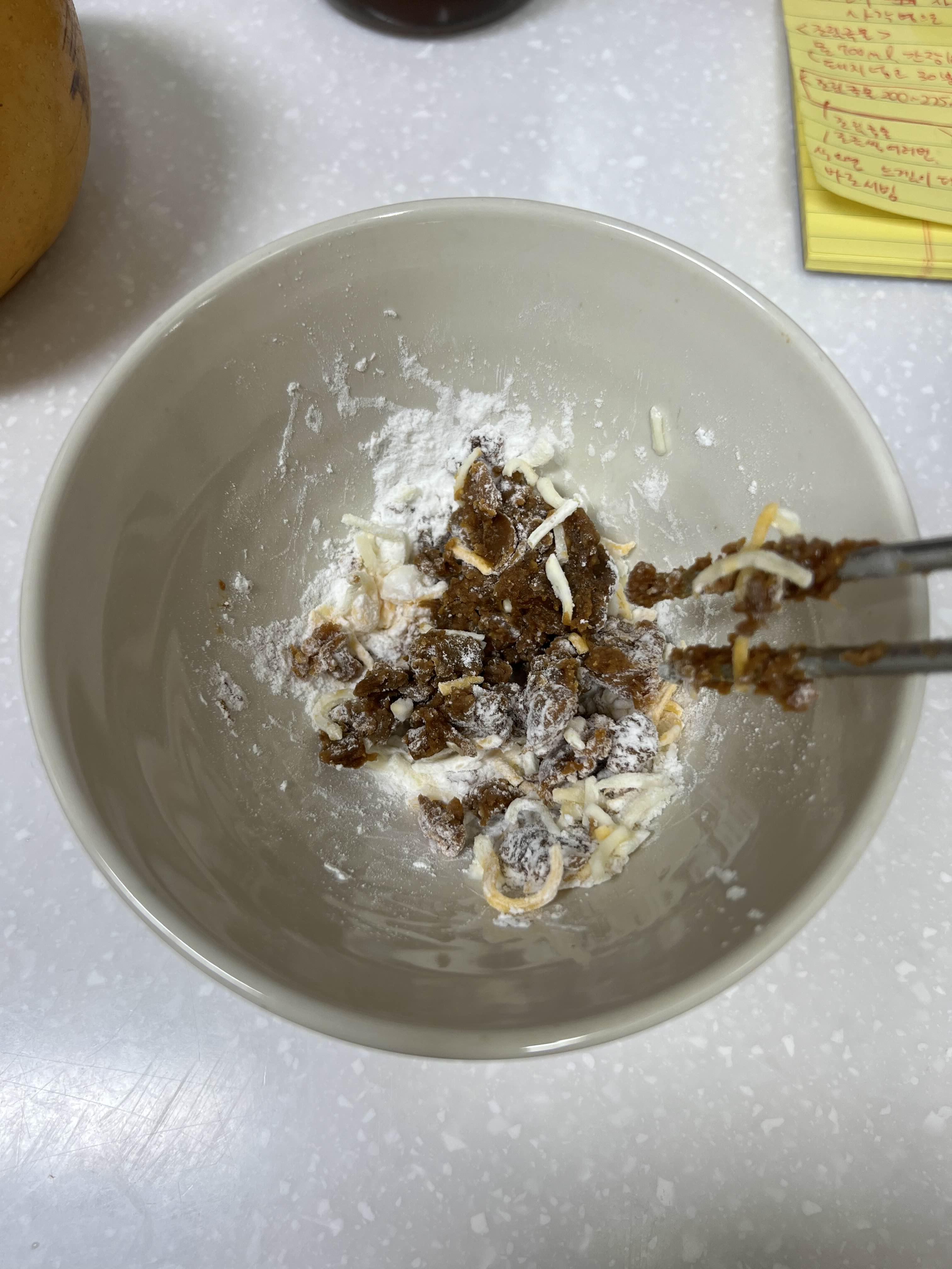 쌀가루와 치즈를 좀 섞었다.