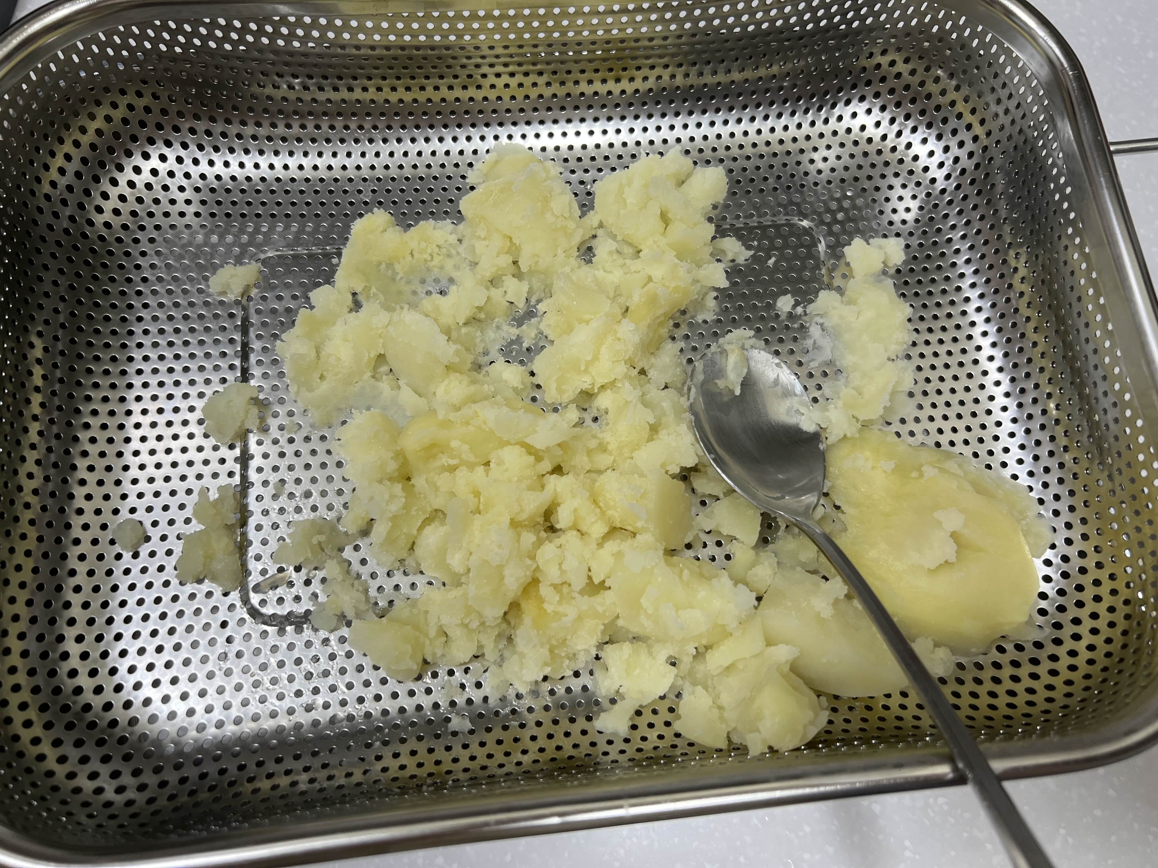 삶은 감자를 체에 내린 후