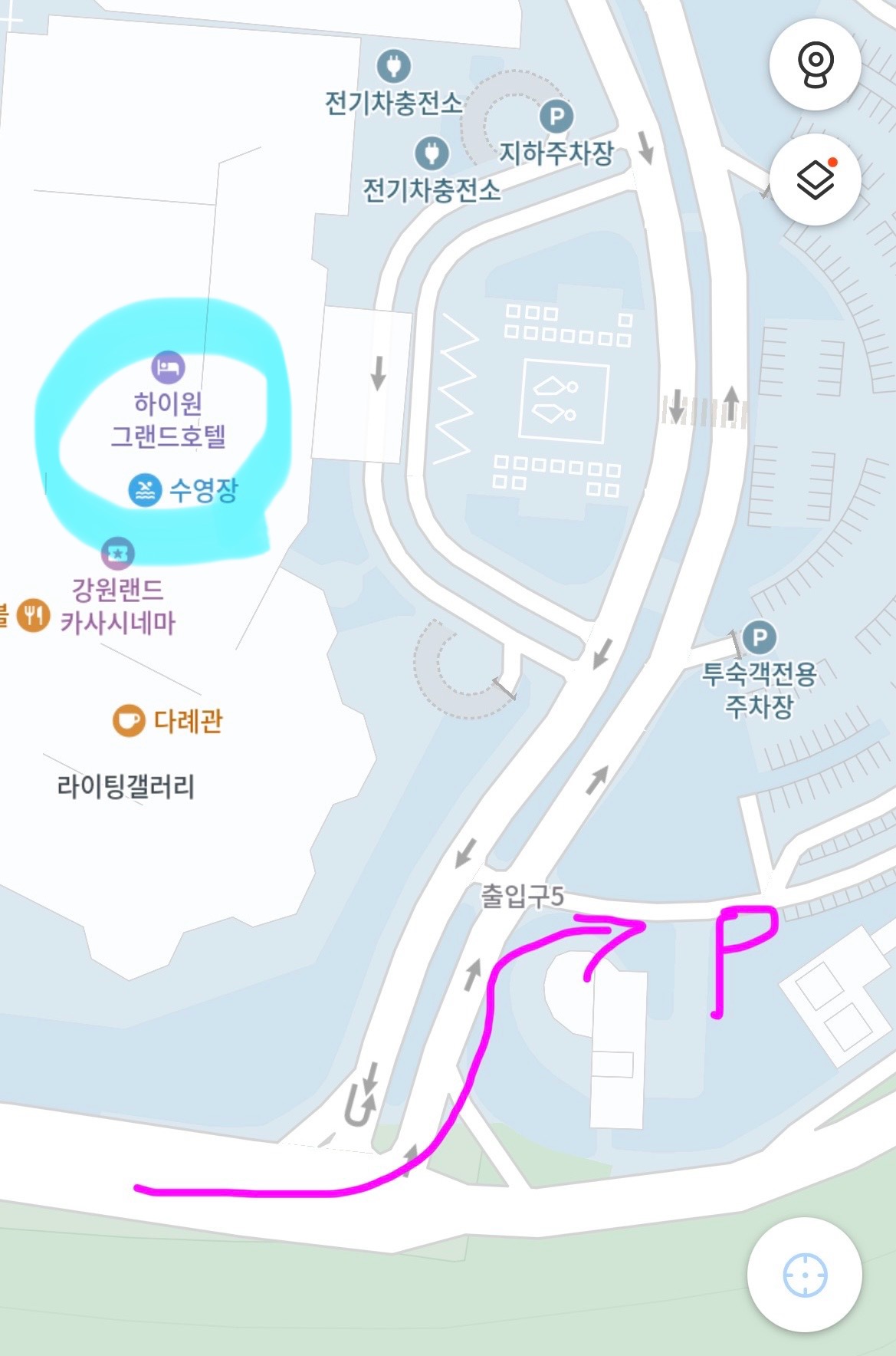 이제 하이원그랜드호텔에 주차하고 수영장에 갈 시간