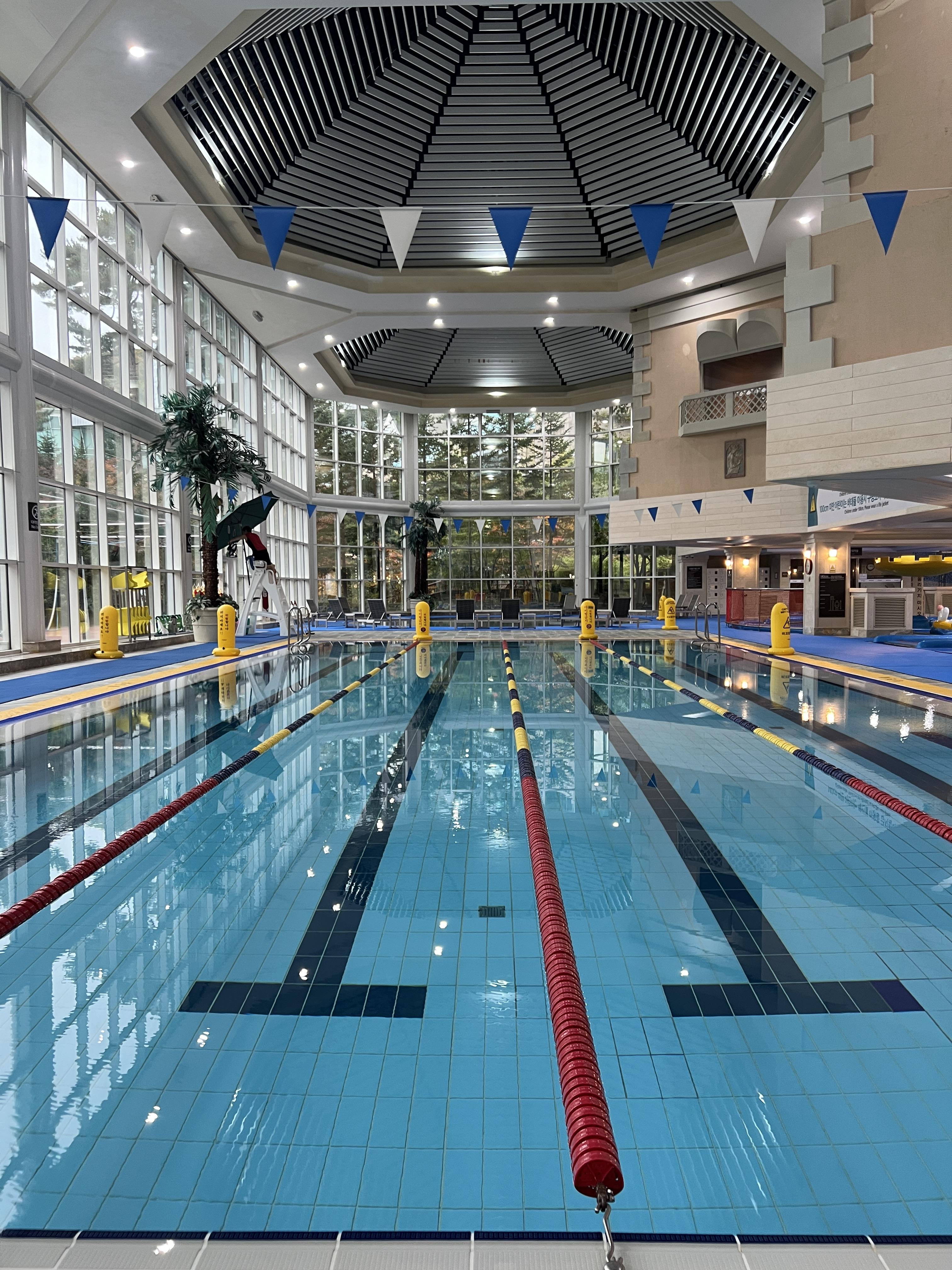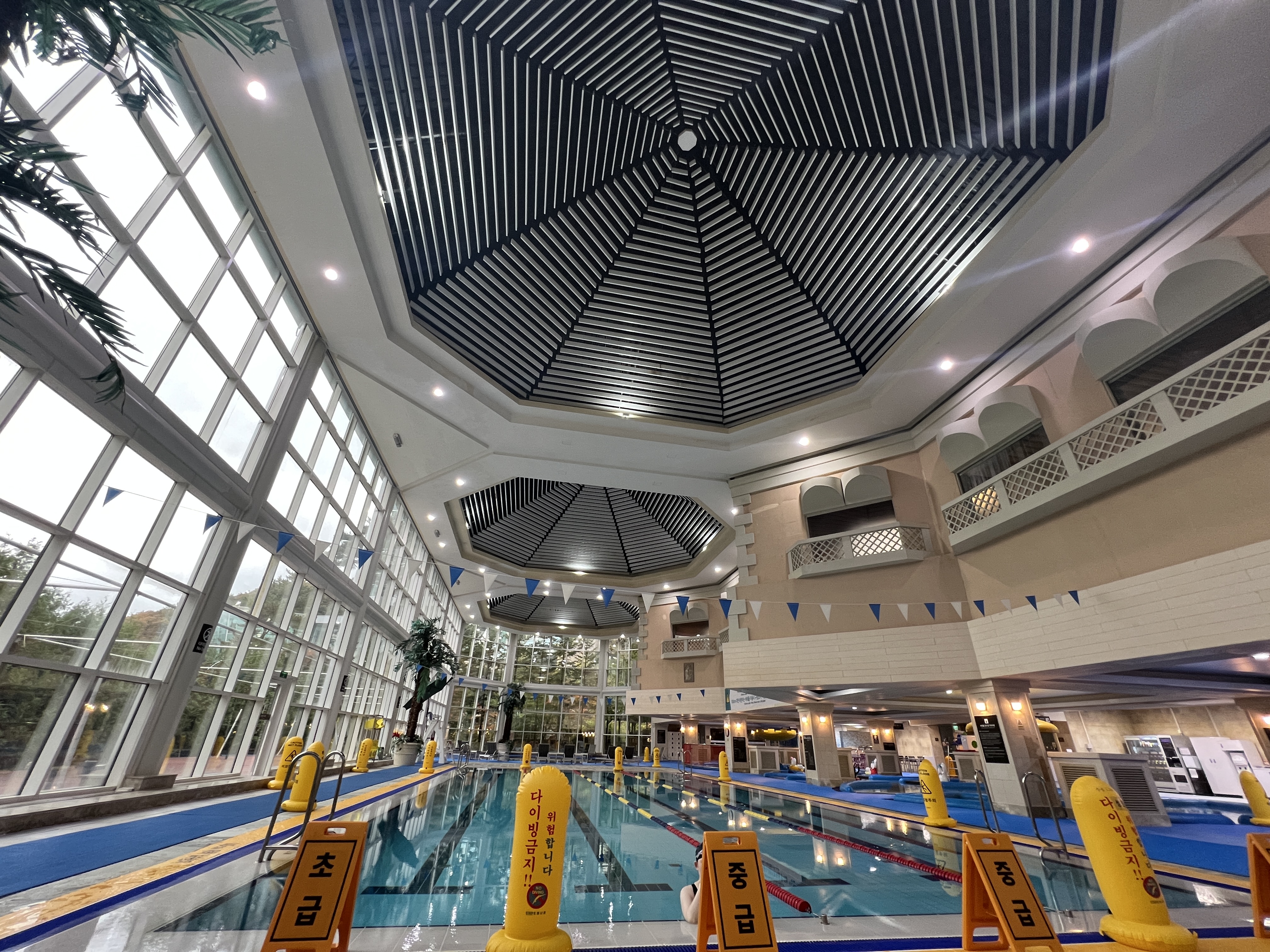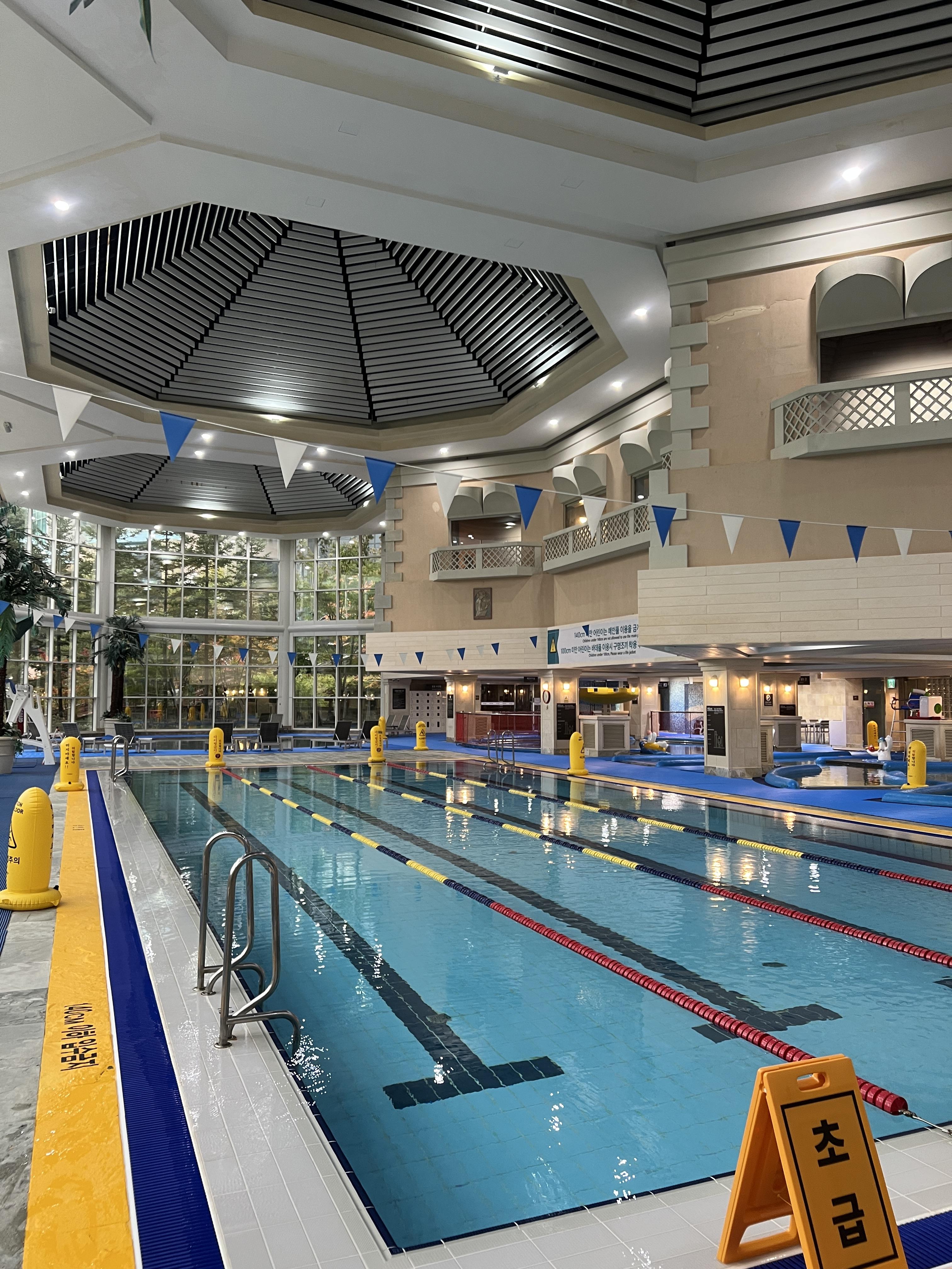 평일 오전 10시 반이라 아무도 없어서 우리 둘이서 수영연습을 2시간이나 했다.