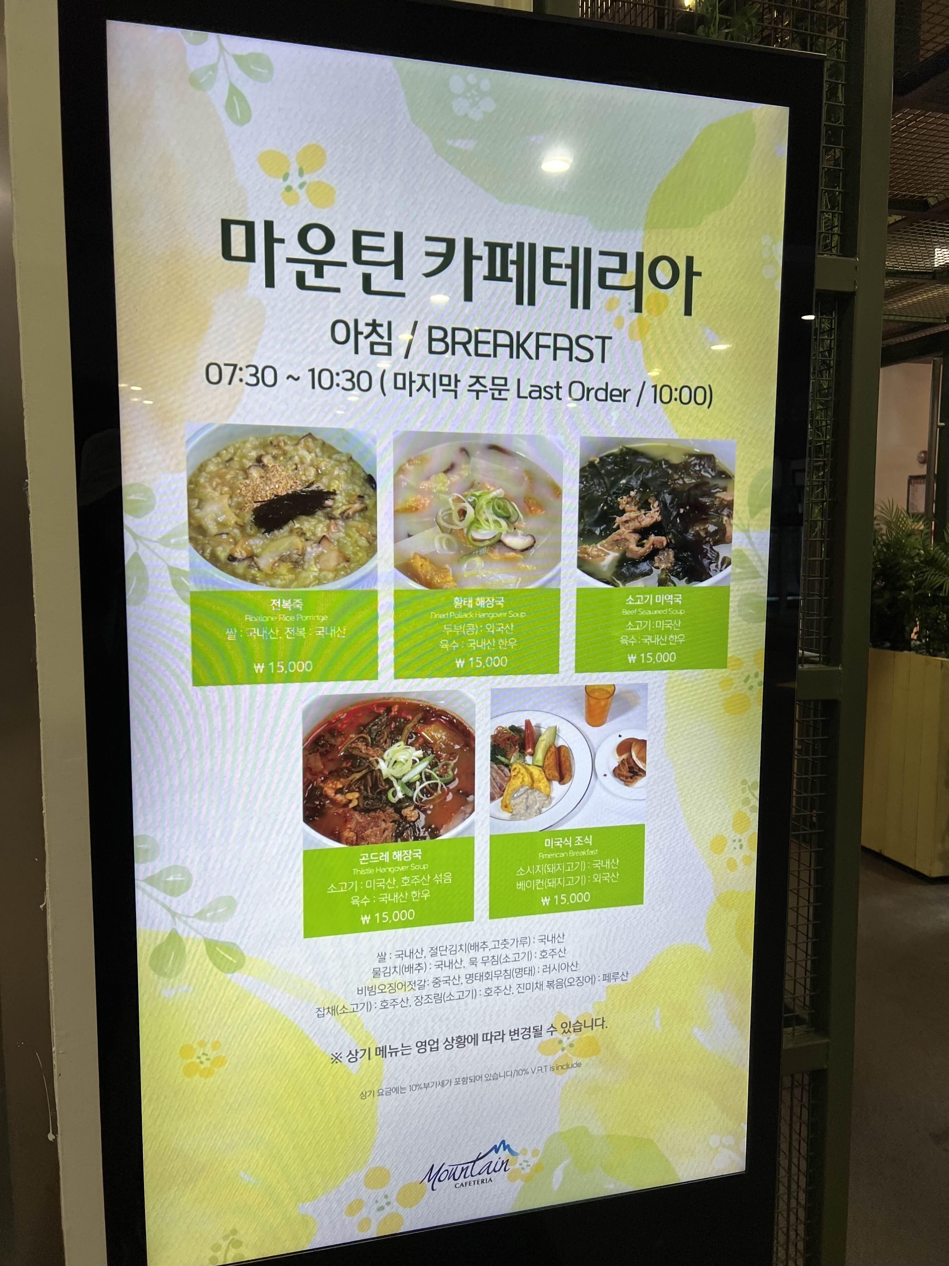 마운틴콘도 조식은 케이블카 타는 곳 2층이었다.