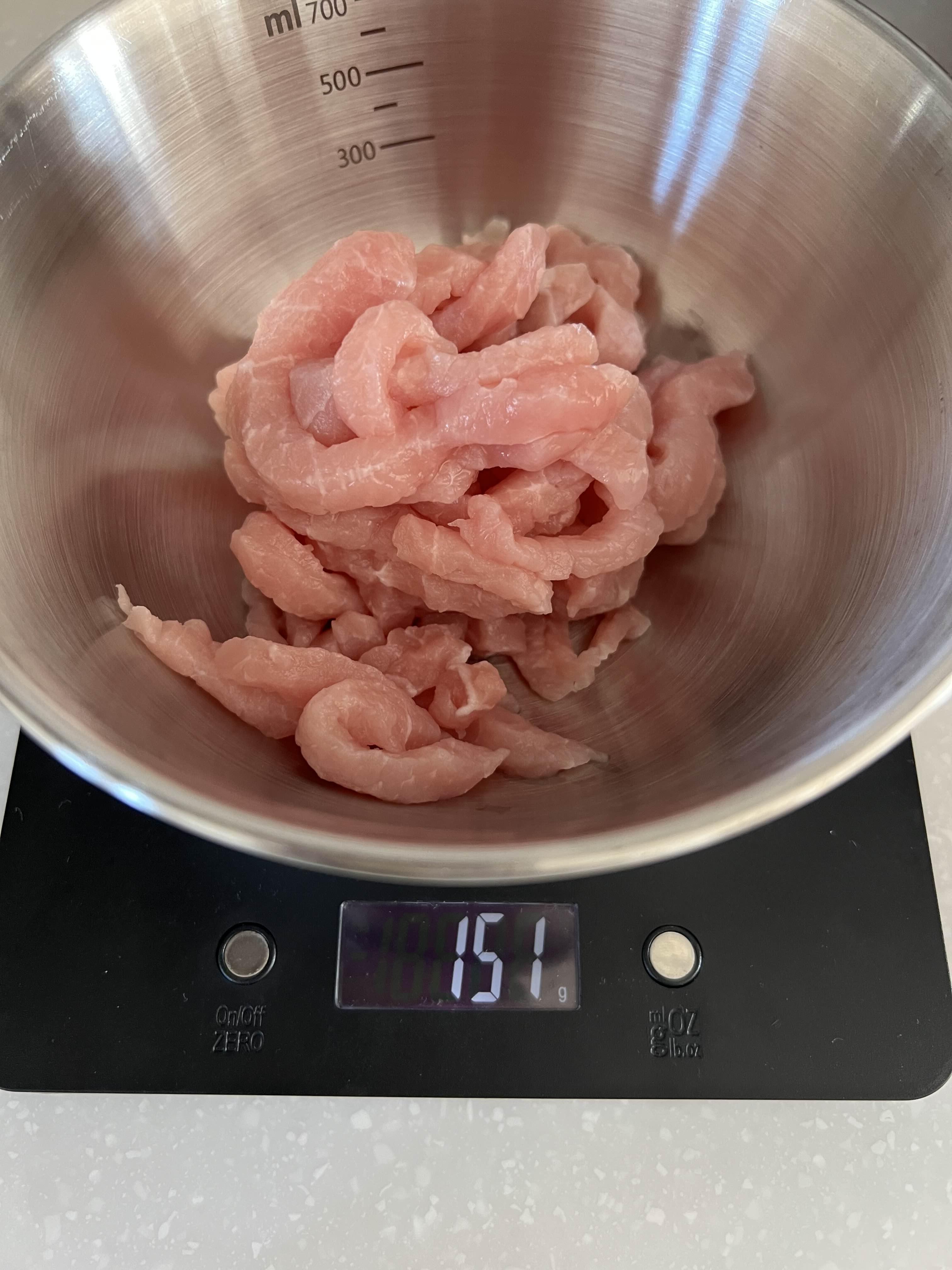 잡채용 고기 150g 준비 (151g 됨)