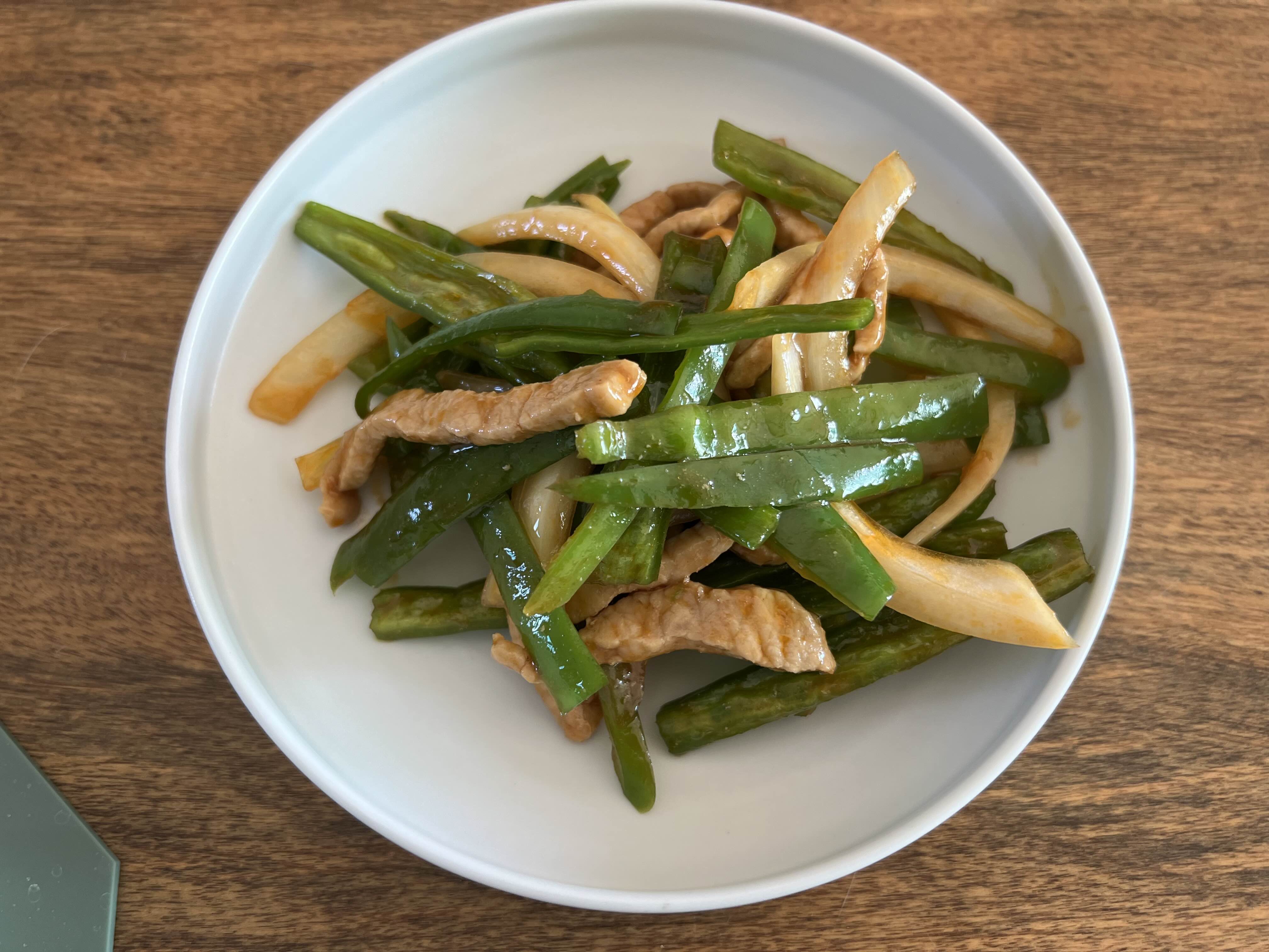 고추잡채는 고추의 신선한 맛과 부드러운 돼지고기 이 둘을 빠르게 볶아 고소하면서도 불맛이 좀 나야는데
