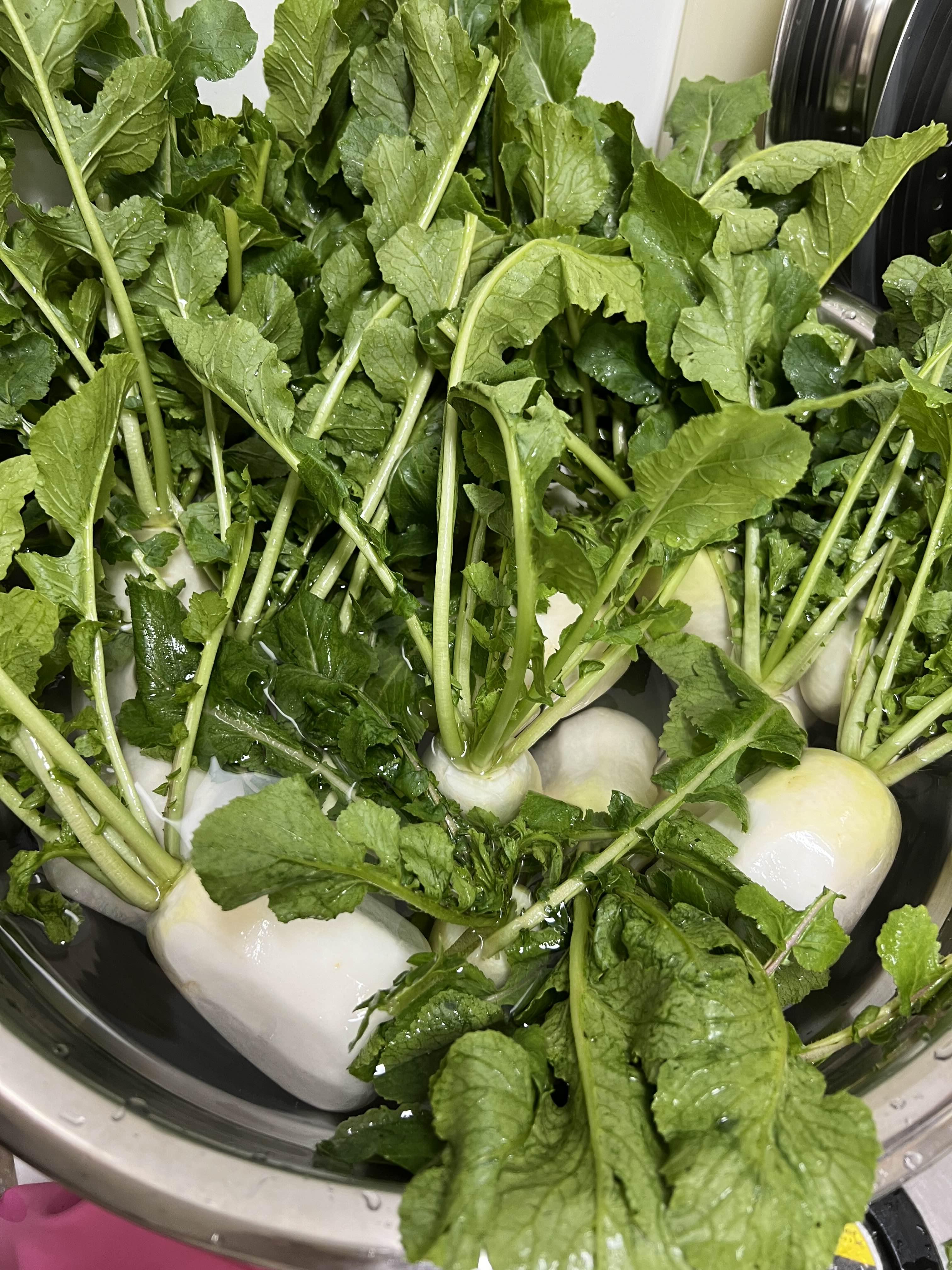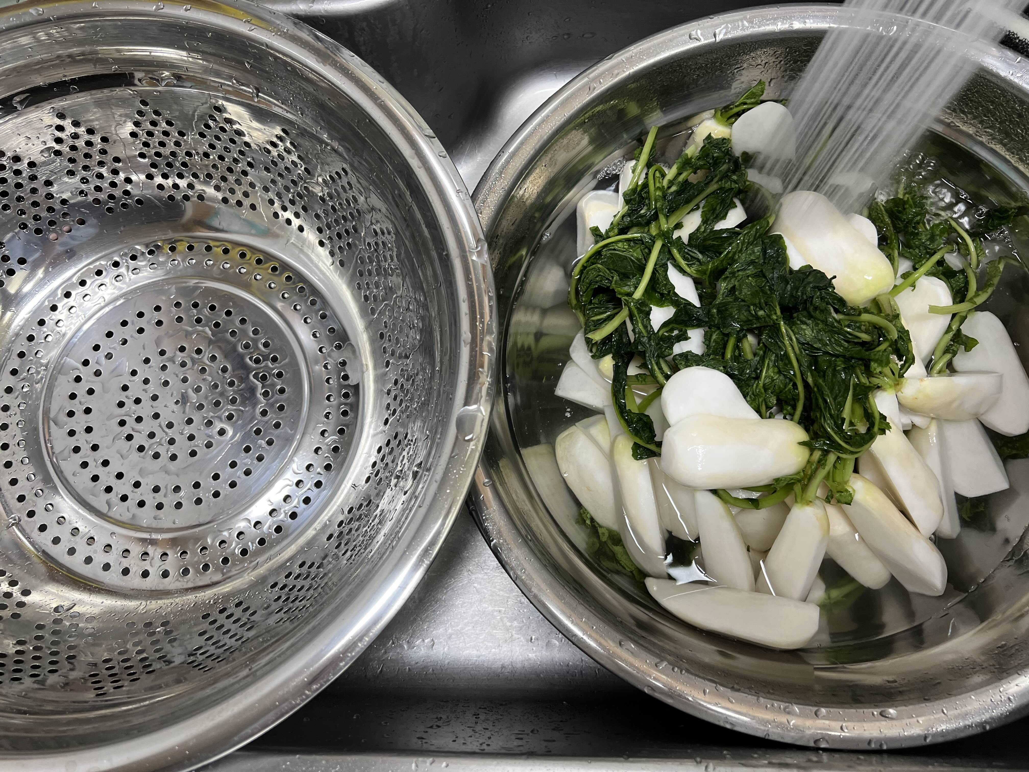 알타리무 살짝 헹궈주며