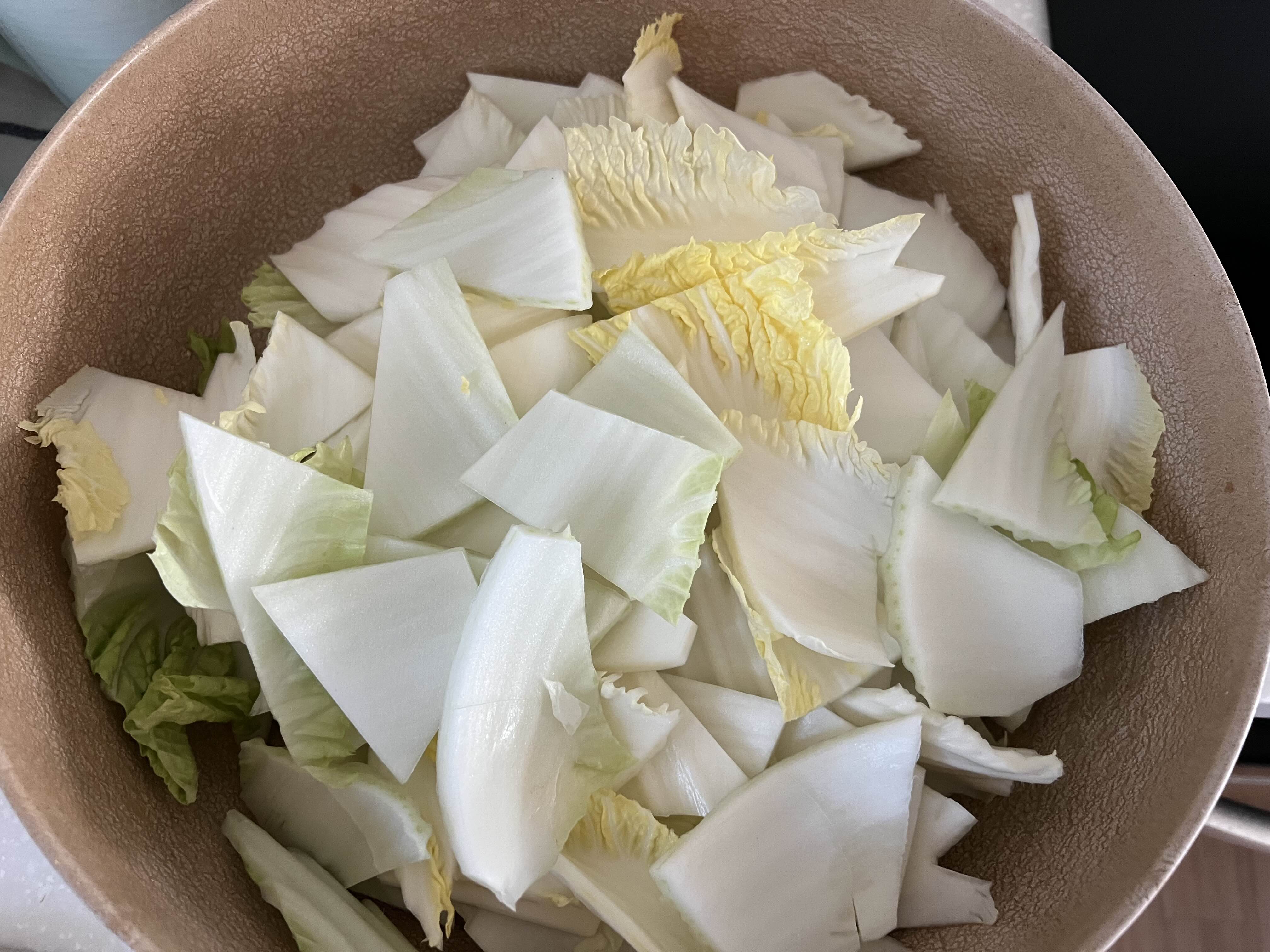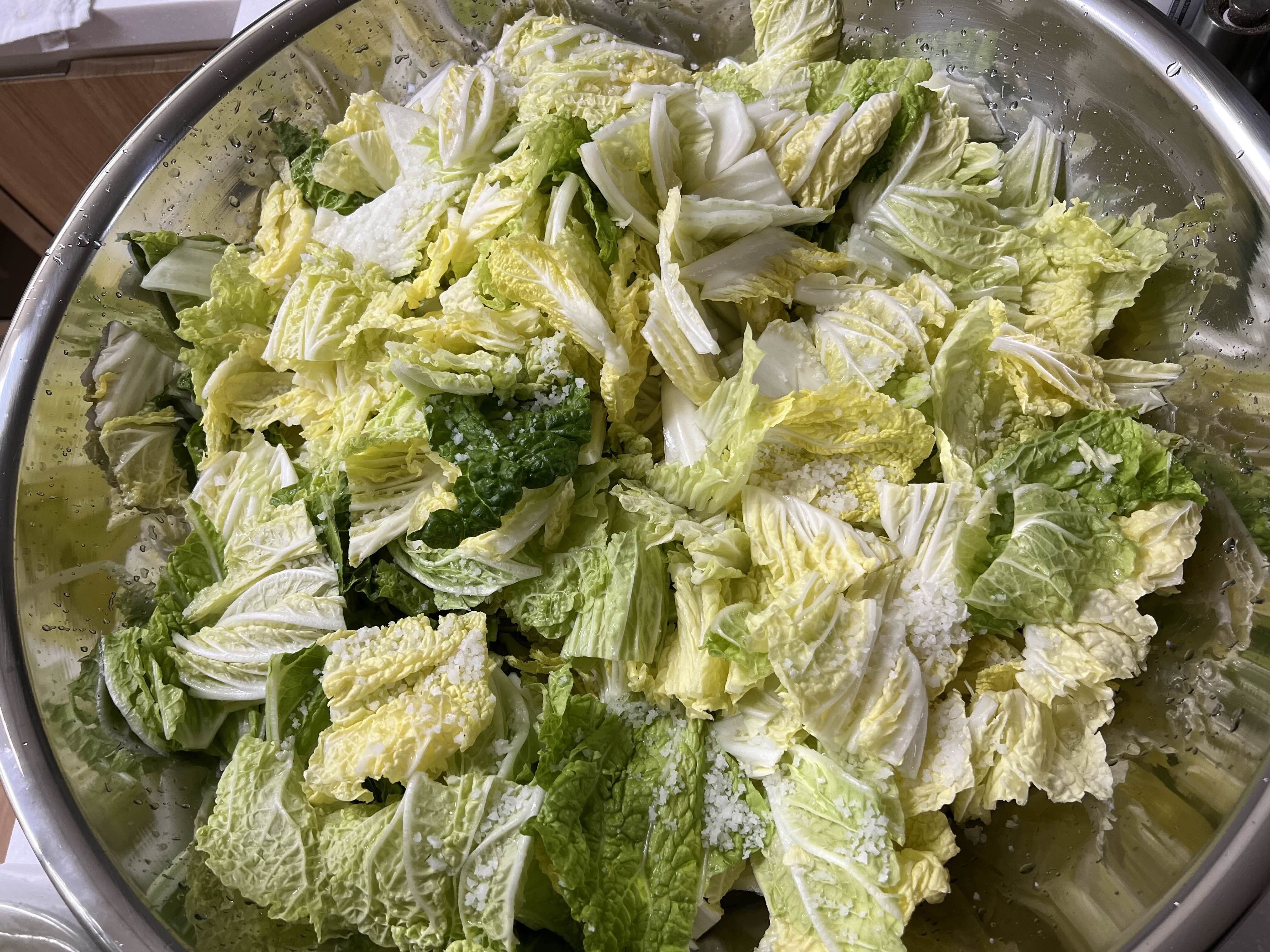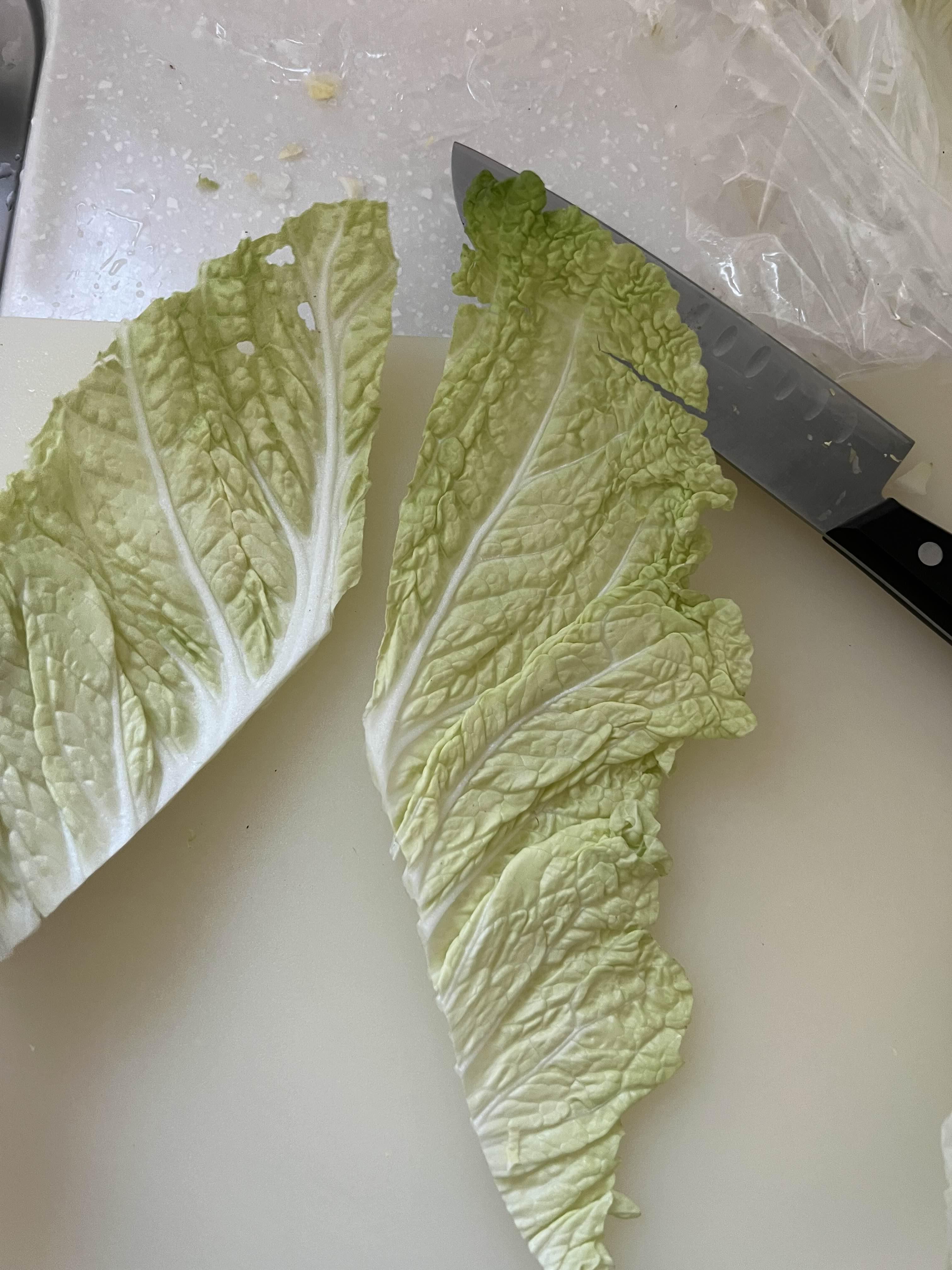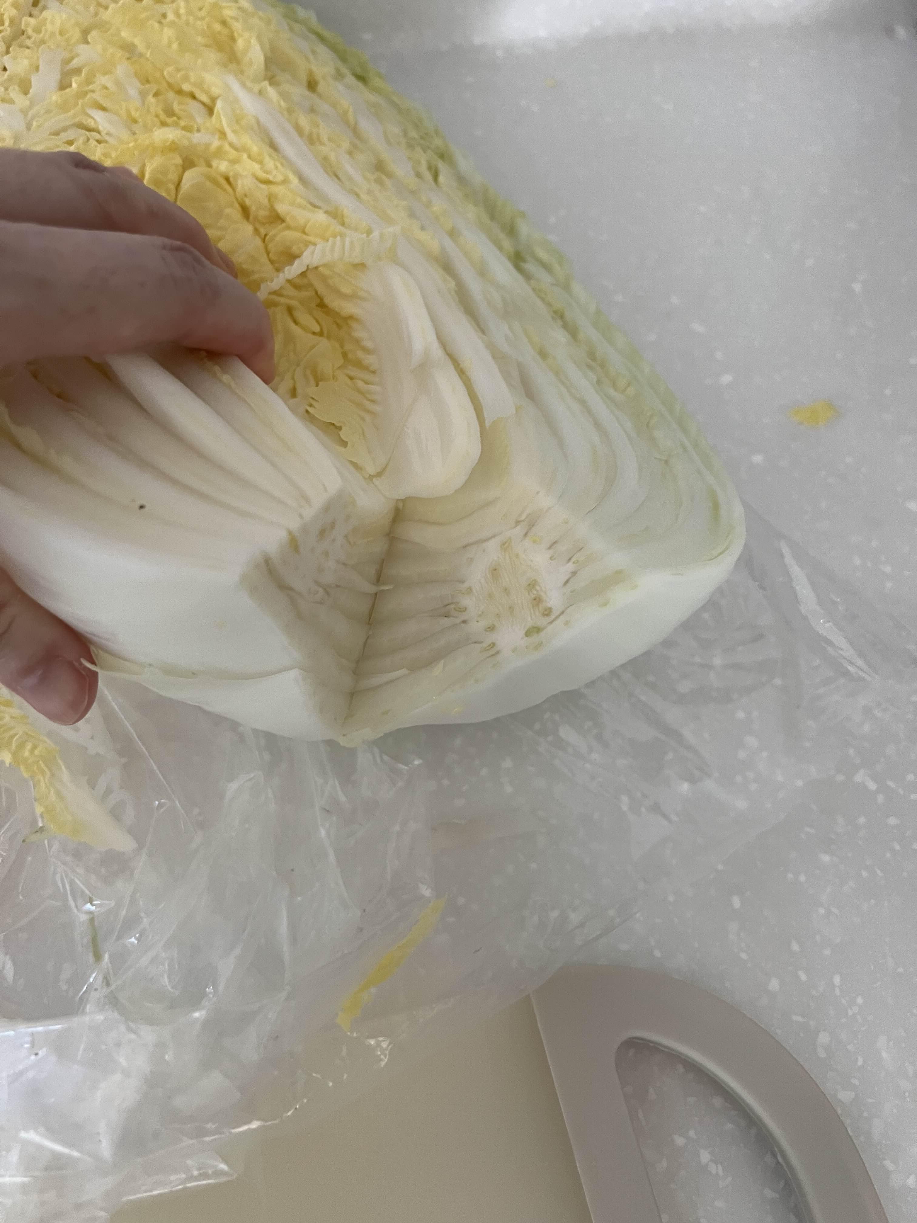 배추 줄기는 두꺼우므로 3시간 절이고, 잎은 50분-1시간 절이면 된다.